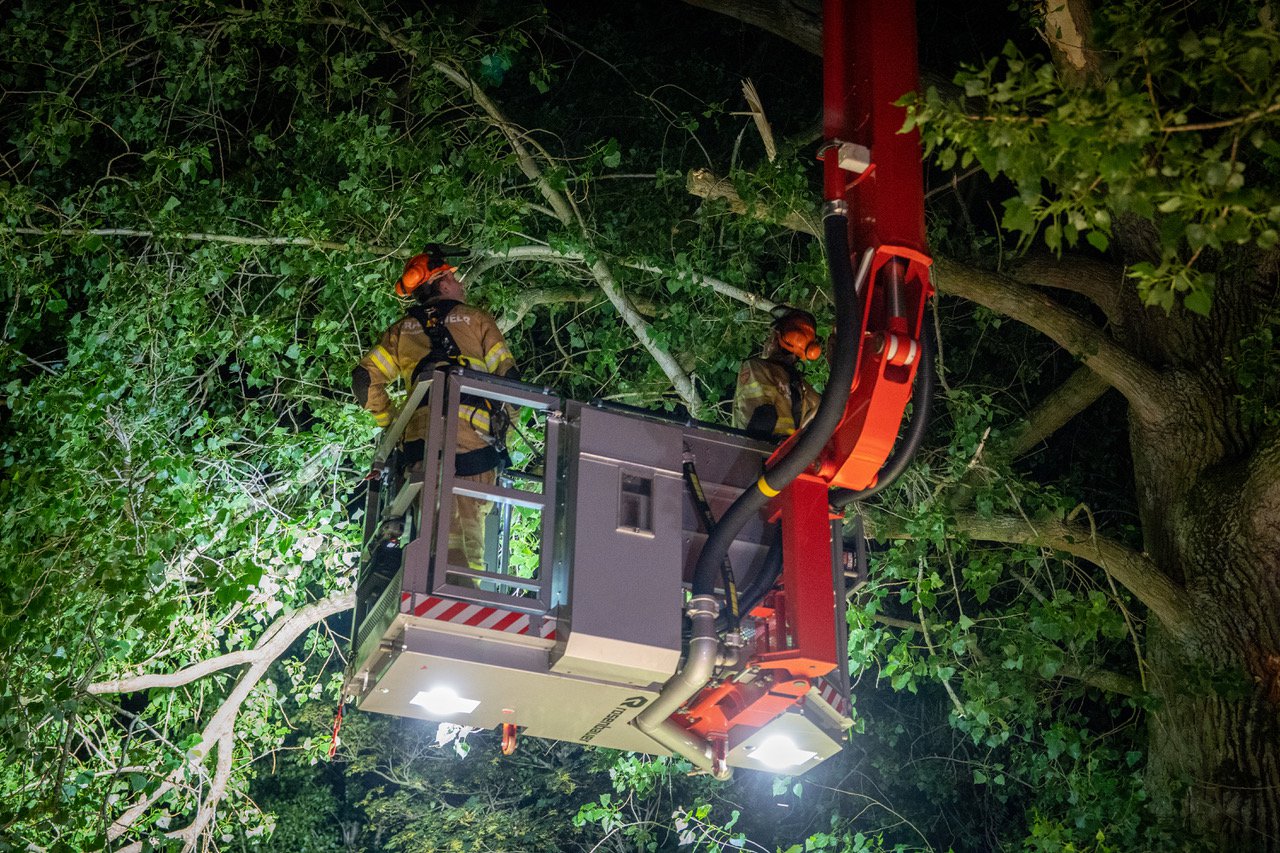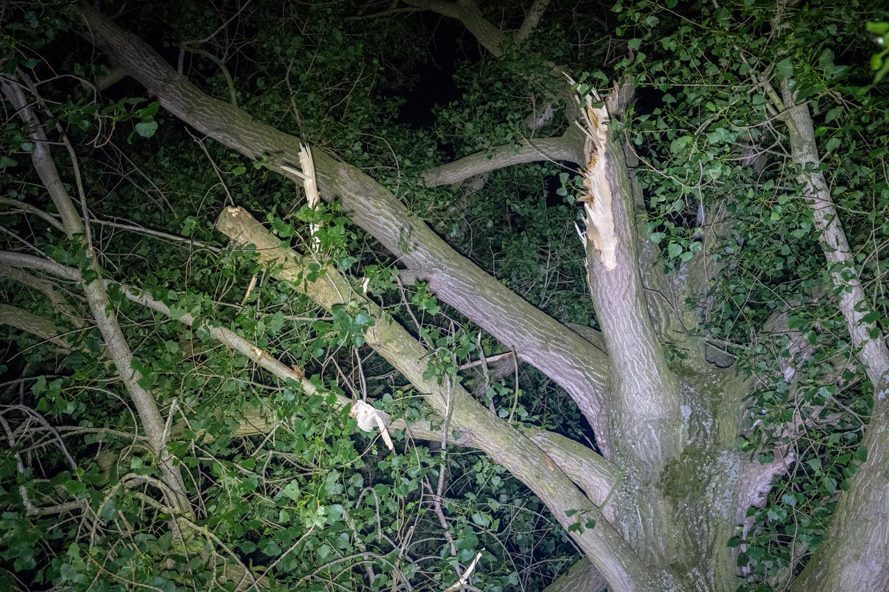 De enige uitweg vanaf de parkeerplaats aan de Puttmanskrib in Herwen was namelijk volledig geblokkeerd door twee grote takken die uit een boom waren gevallen. Het stel heeft de brandweer gebeld die uiteindelijk ruim twee uur bezig is geweest om de weg weer veilig vrij te krijgen.