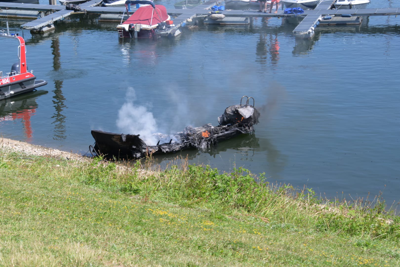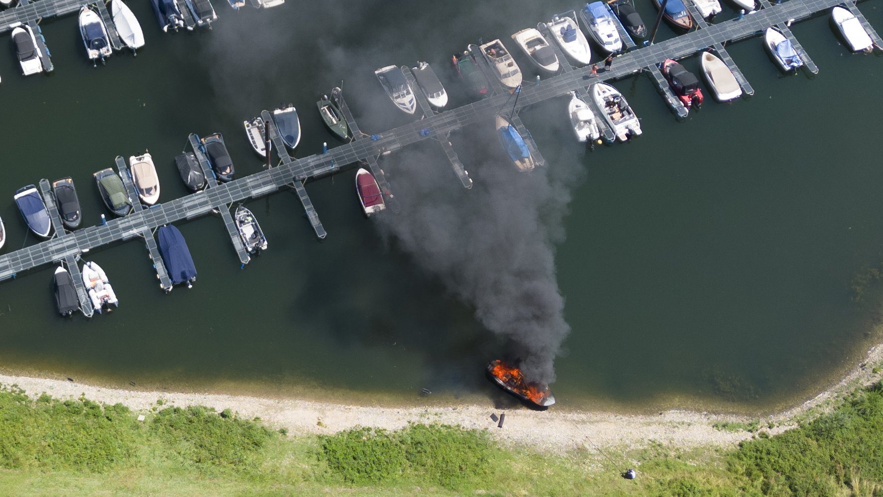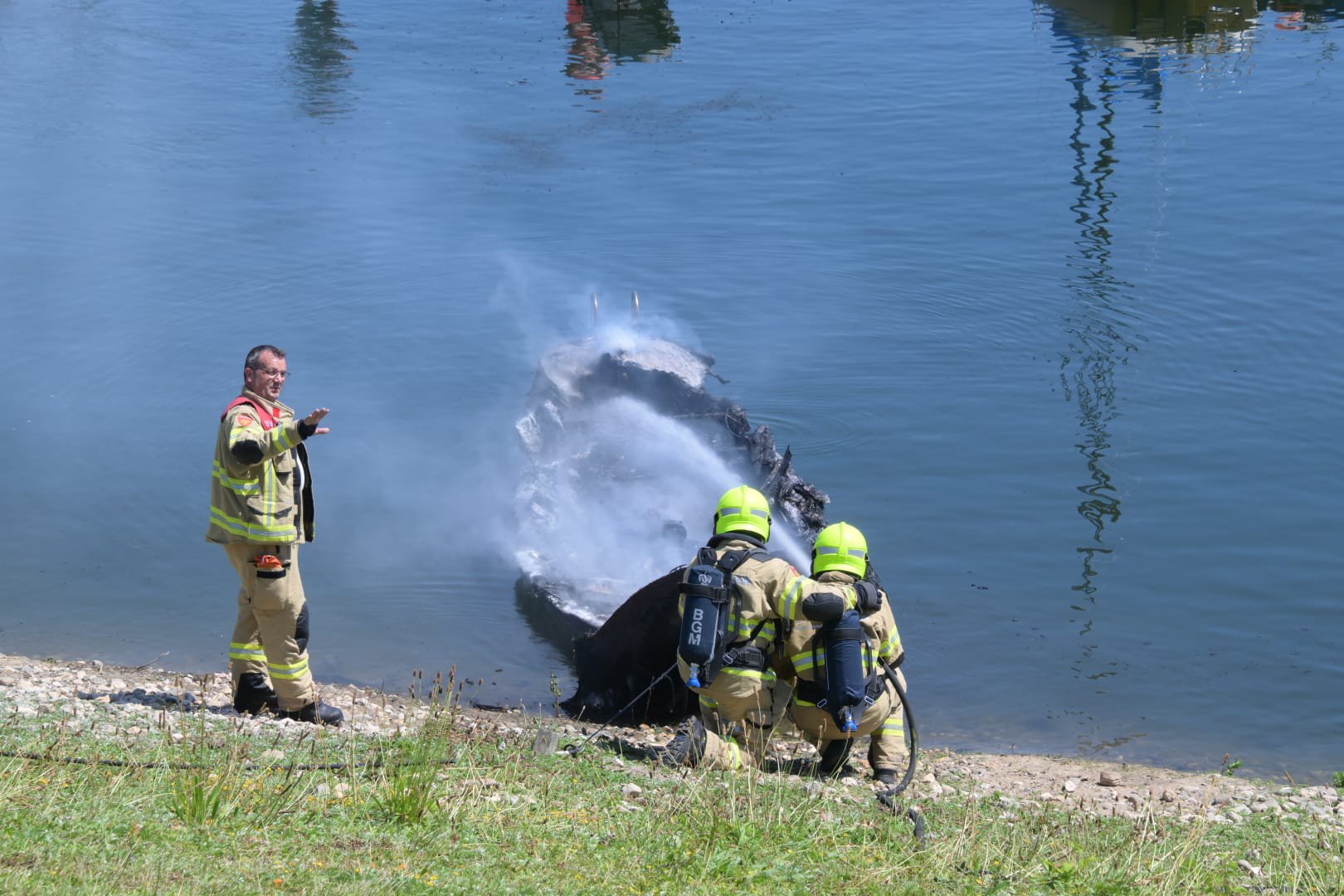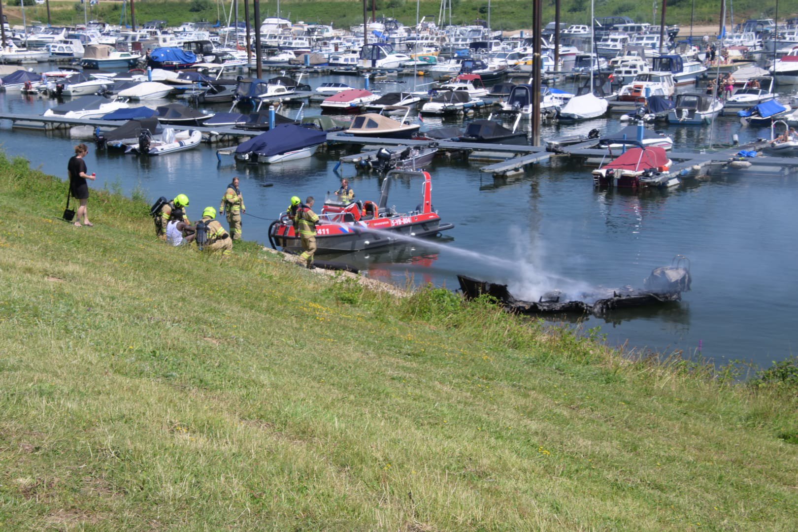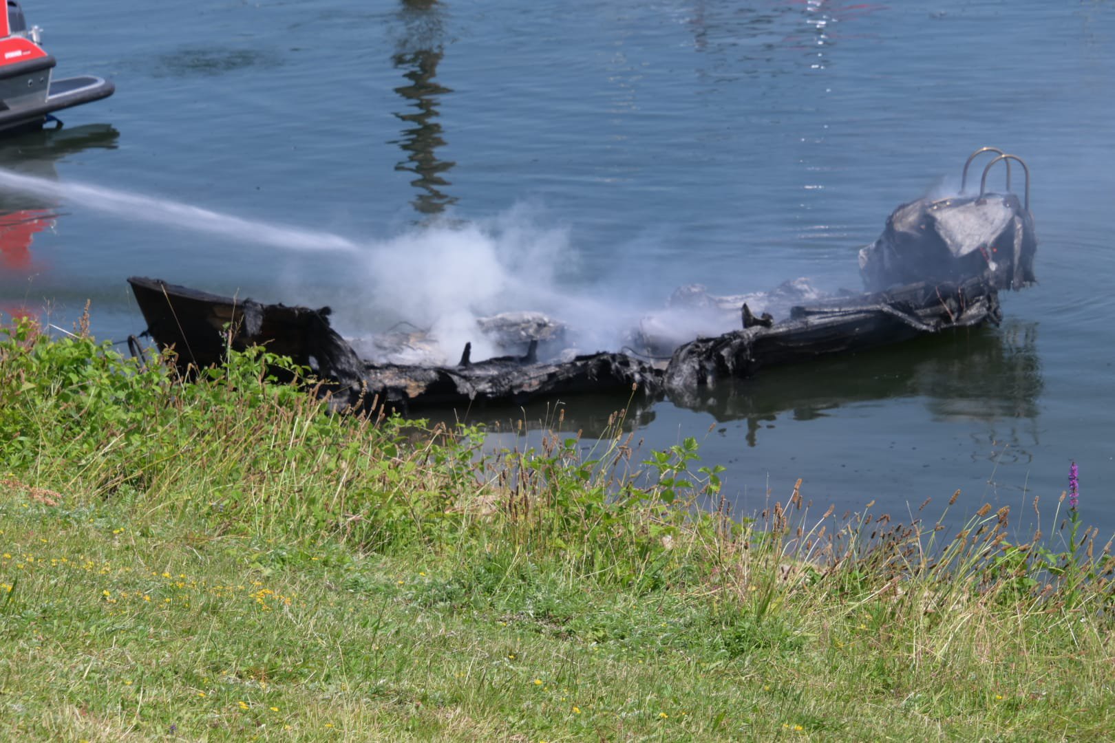 De brandweer heeft het vuur geblust. Van de boot is niks meer over. Ook is deze gezonken in het water. Deze zal later uit het water worden geborgen.