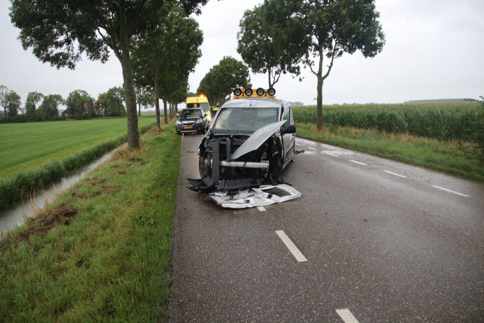 Bestelbusje botst tegen boom, voertuig total loss