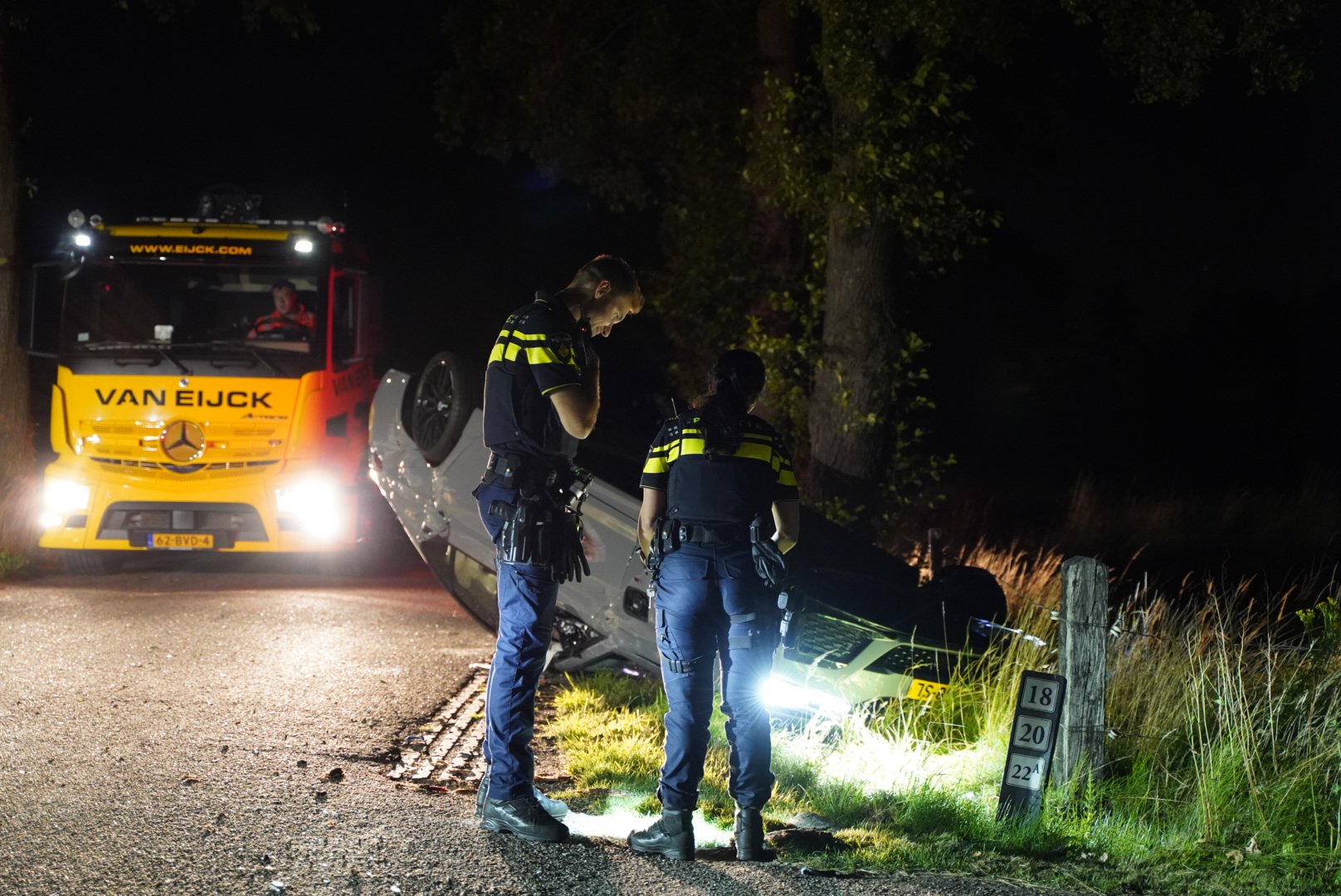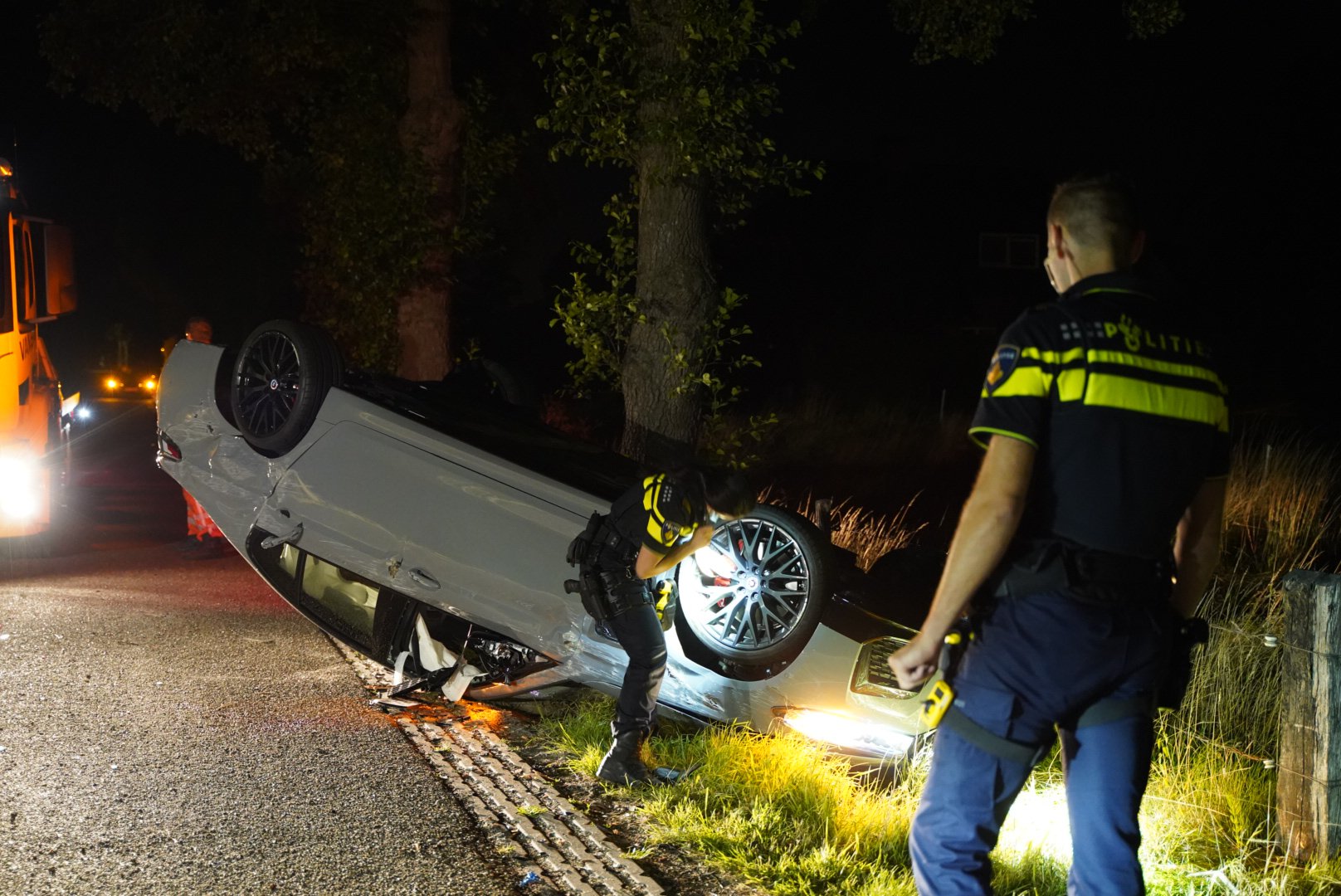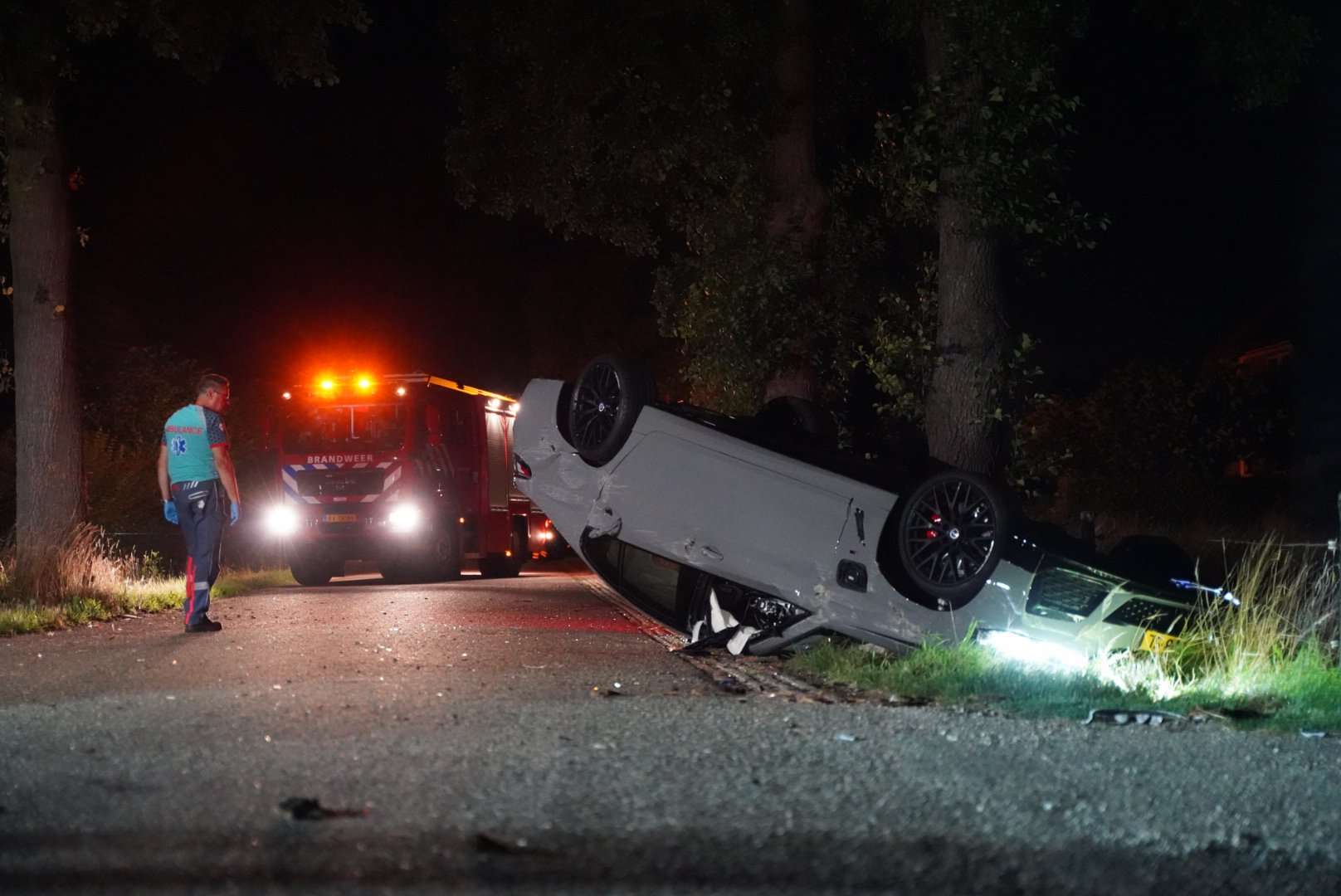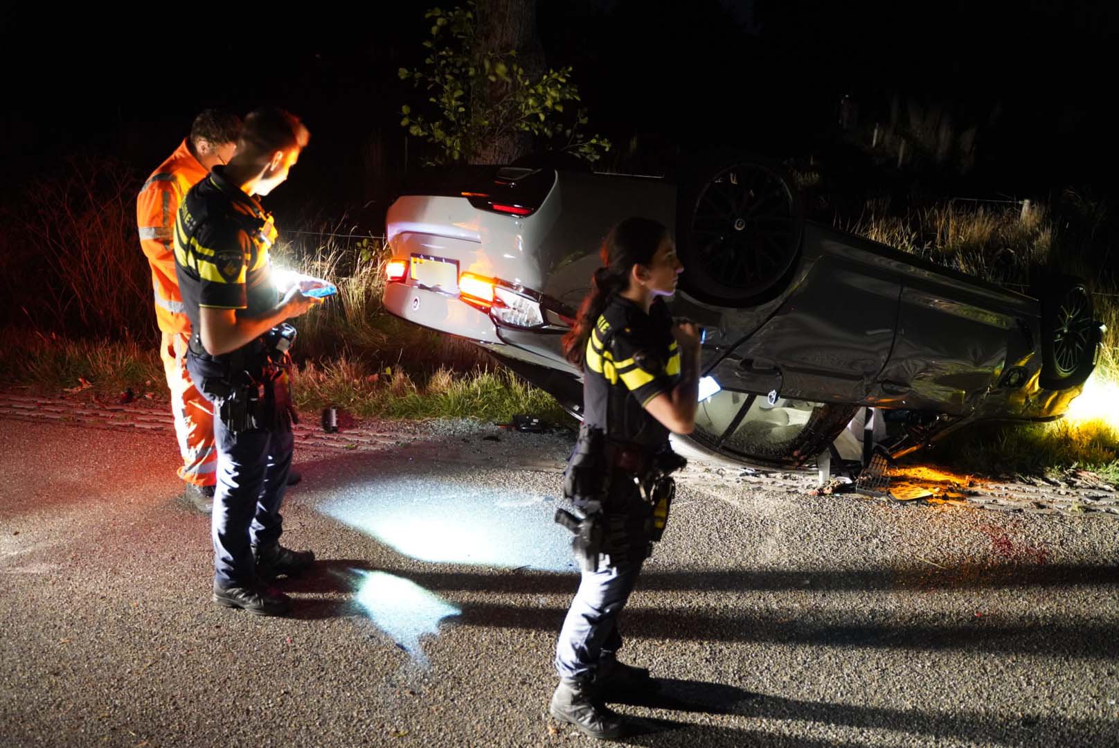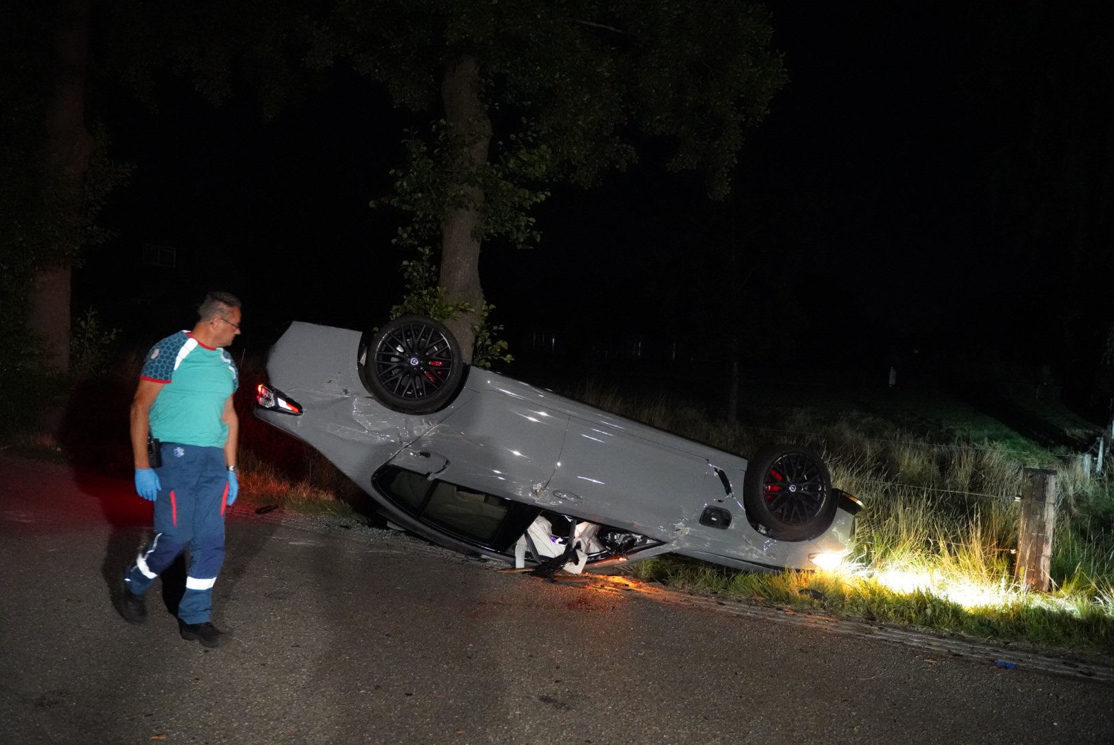 Het slachtoffer is gewond met een ambulance naar het ziekenhuis in Ede vervoerd. Van zijn Hyrbide BMW 5 serie, met een waarde van meer dan 90.000 euro, is weinig meer overgebleven.