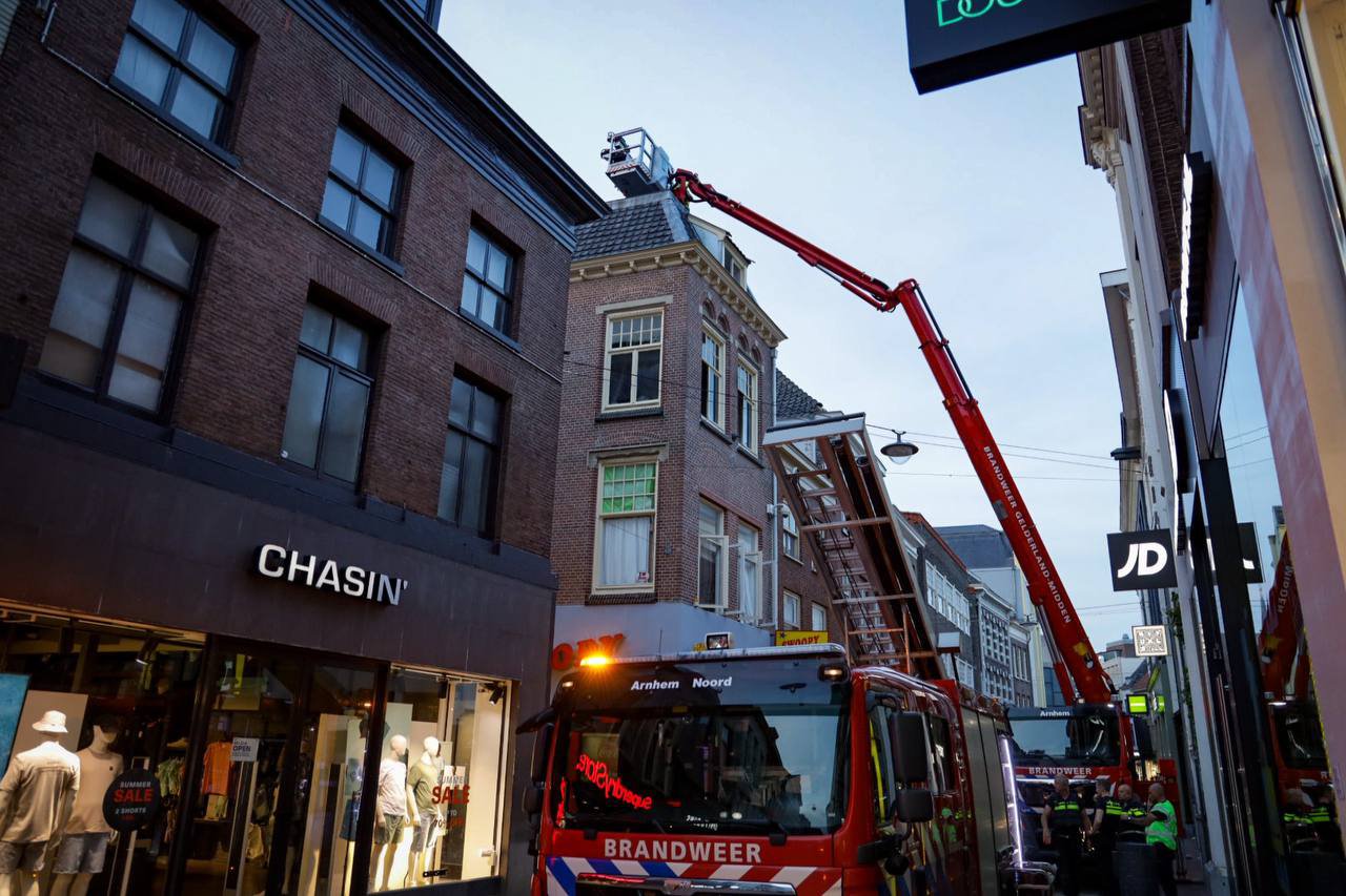 ARNHEM – In de binnenstad van Arnhem heeft maandagavond een korte uitslaande brand gewoed. Hulpdiensten rukte groots uit.