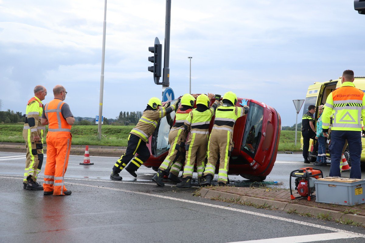 Auto op z’n kant na ongeval, veroorzaker vlucht maar wordt aangehouden