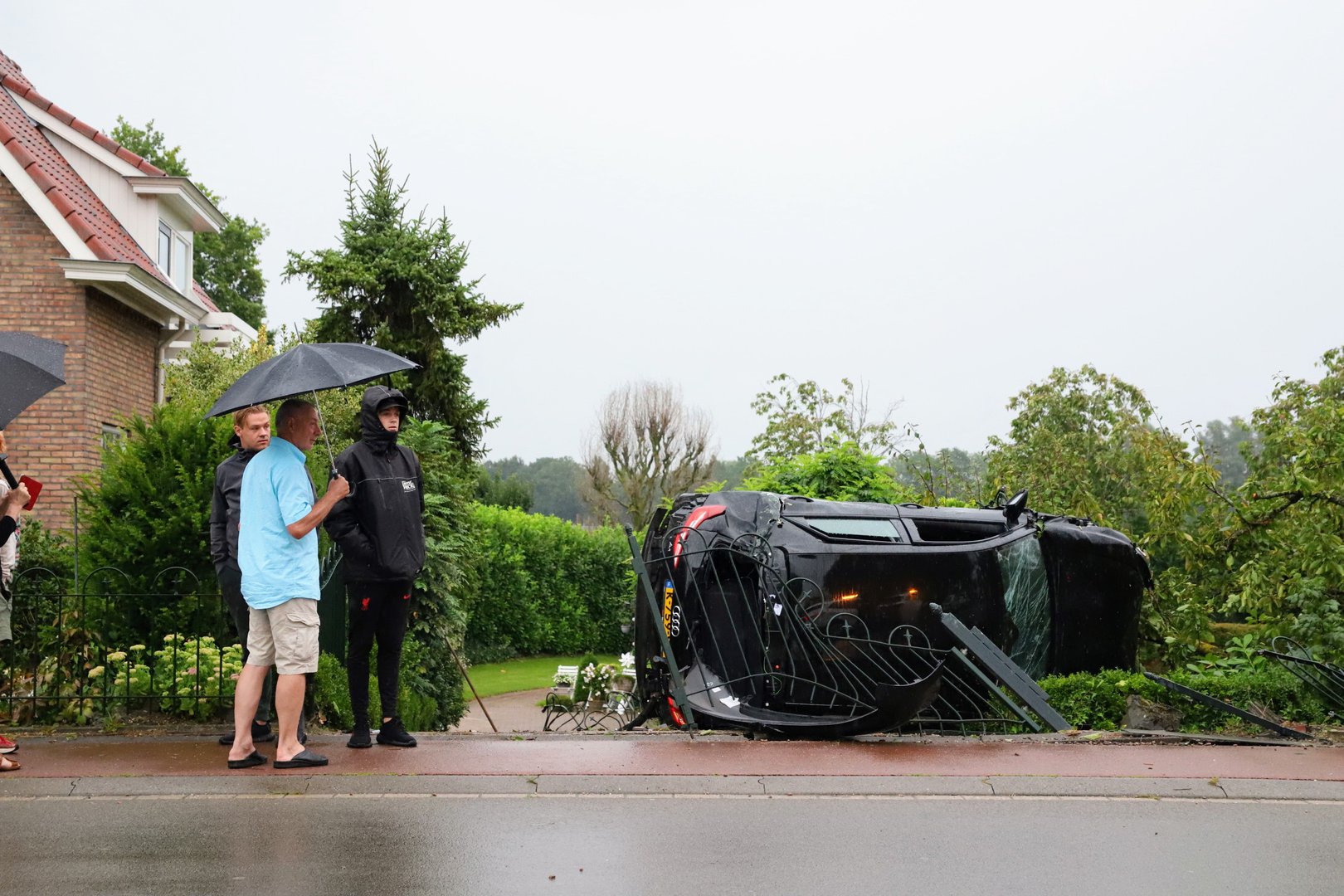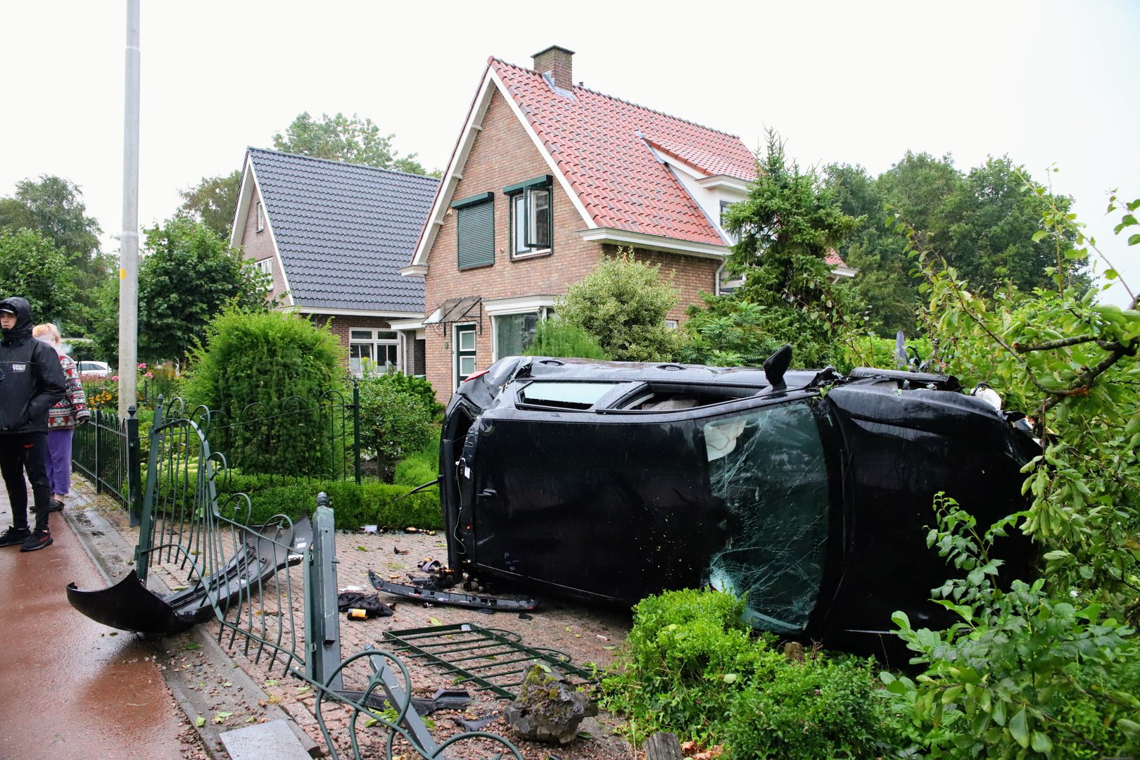 De personenauto raakte even voor 7.00 uur uit de bocht en reed vervolgens over een aanzienlijke afstand een sierhek omver. De impact was zo groot dat een deel van het hekwerk op de oprit van de nabijgelegen bewoners belandde.
