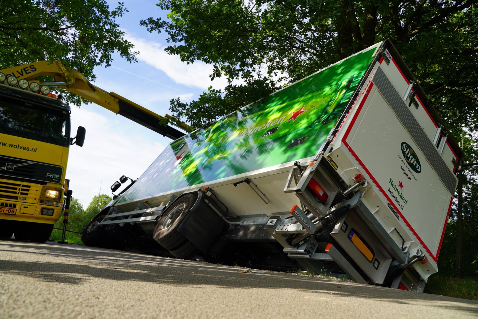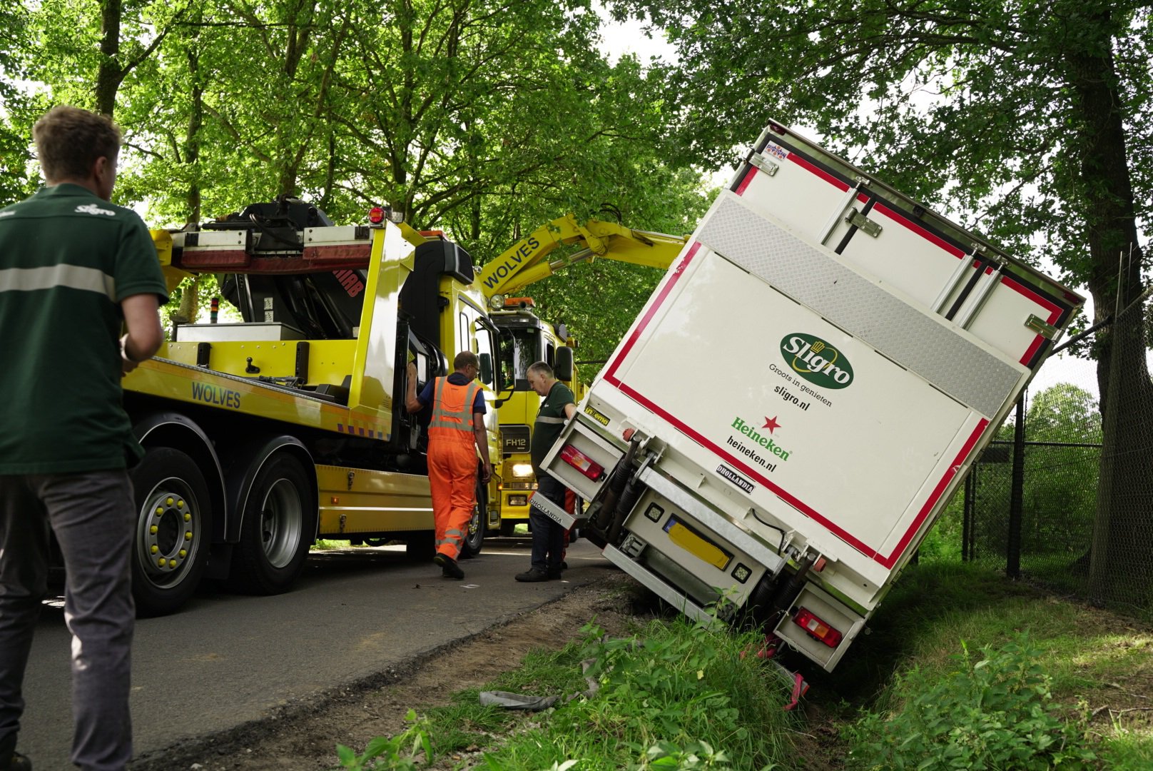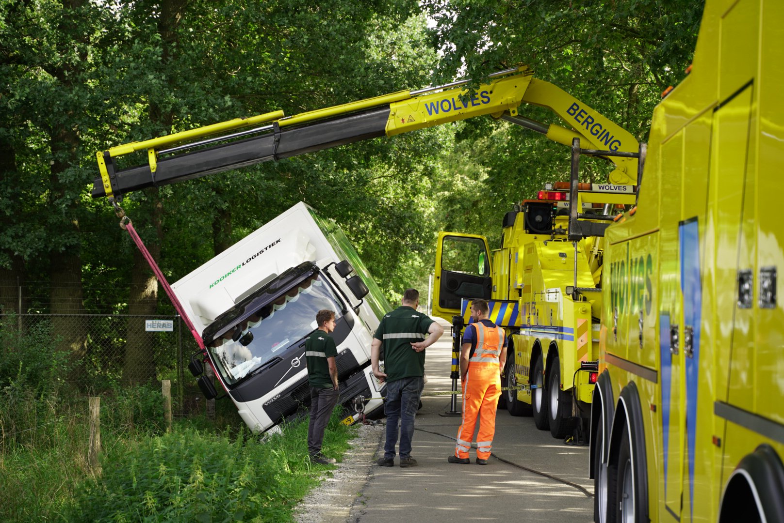 Vrachtwagen belandt in greppel na uitwijkmanoeuvre