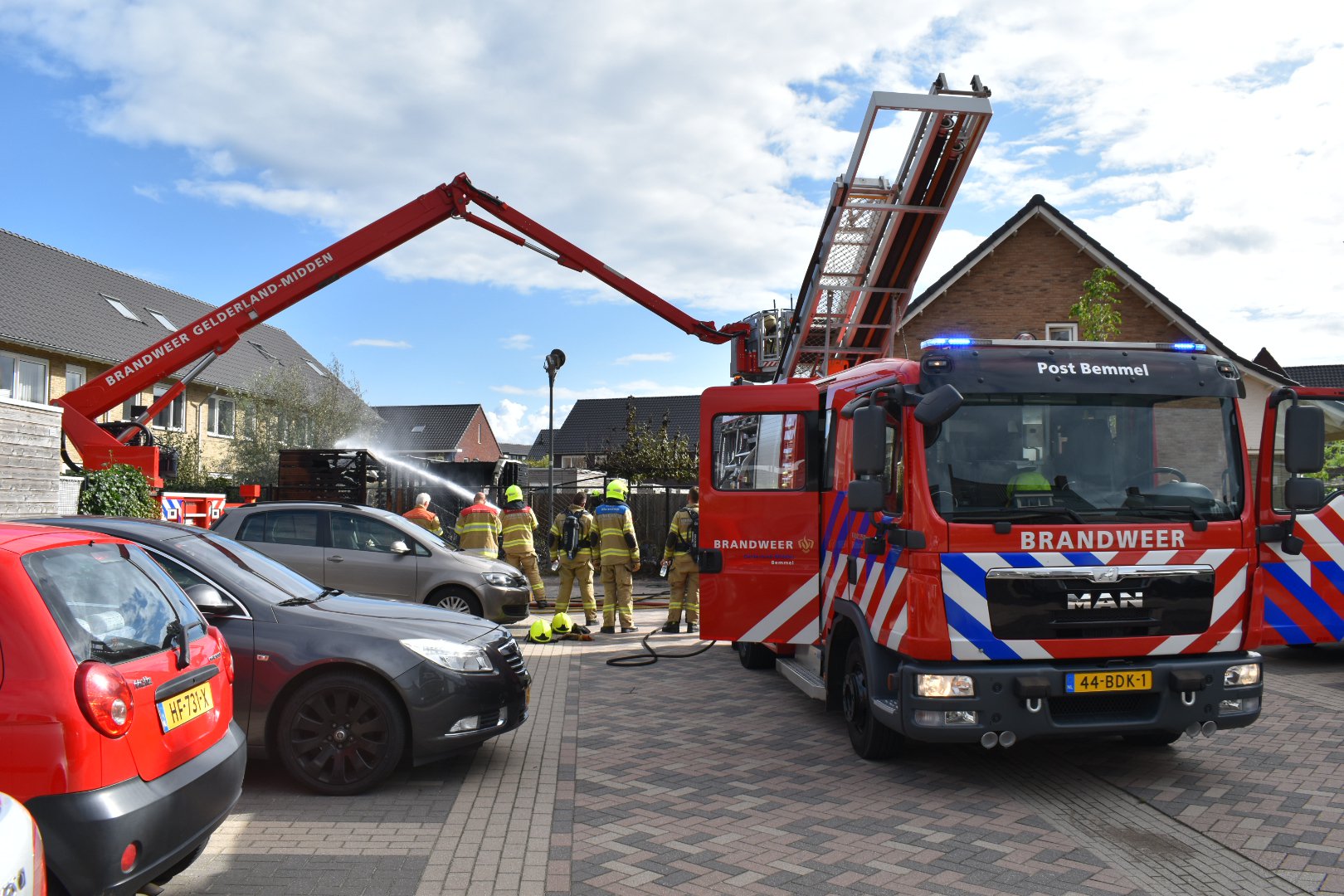 De Bemmelse brandweer was zeer snel ter plaatse en heeft de 1e blusactie ingezet. Direct hierna volgde de korpsen Lent en Arnhem met de hoogwerker. Drie schuurtjes zijn door de brand verloren gegaan. Ook de hoekwoning waar de brand vermoedelijk begon liep veel schade op. De vlammen hebben een deel van de woning verwoest. Ook gingen er meerdere fietsen en een scooter in vlammen op.