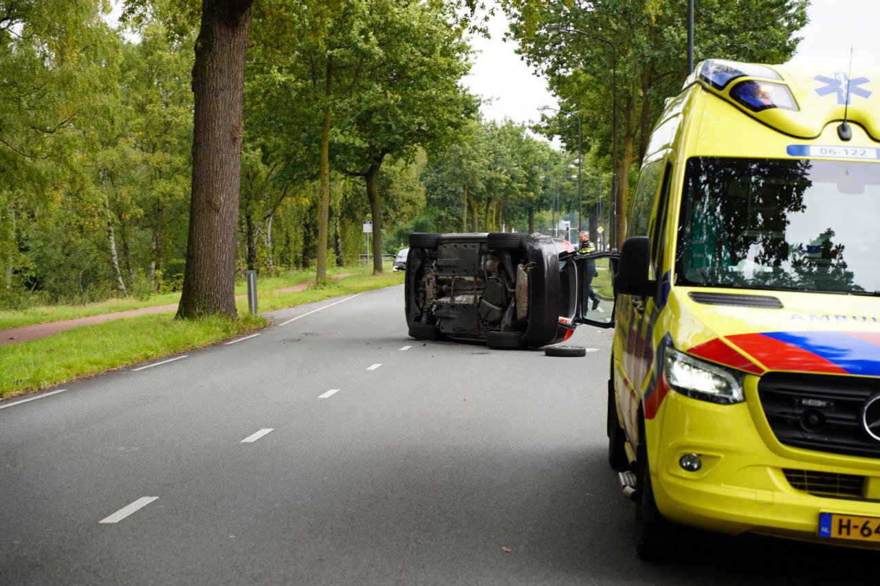 Auto belandt op zijkant na ongeval, bestuurder gewond