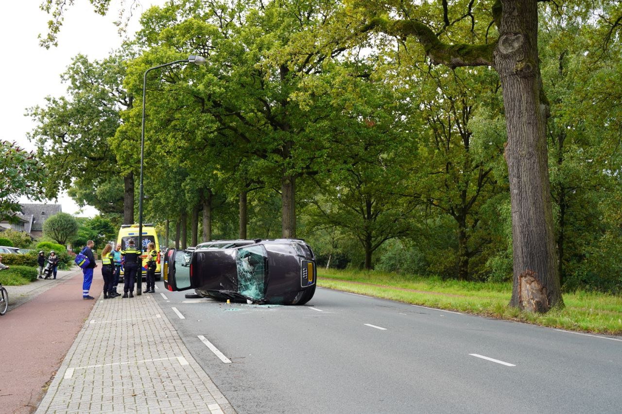 Niet veel later werd de brandweer ook opgeroepen om assistentie te verlenen aan het ambulancepersoneel. Op de Deventerstraat tussen de Osseveldweg en de Top Naeffstraat in, is een auto op een boom gebotst en uiteindelijk op de zijkant beland. De bestuurster van de auto, werd na controle van het ambulancepersoneel met onbekend letsel afgevoerd naar het ziekenhuis. De brandweer heeft de auto uiteindelijk weer op zijn wielen gezet. De auto zal moeten worden afgesleept door de bergingsdienst. Tijdens het ongeval en de berging van de auto is het verkeer langs het ongeval heen geleid.