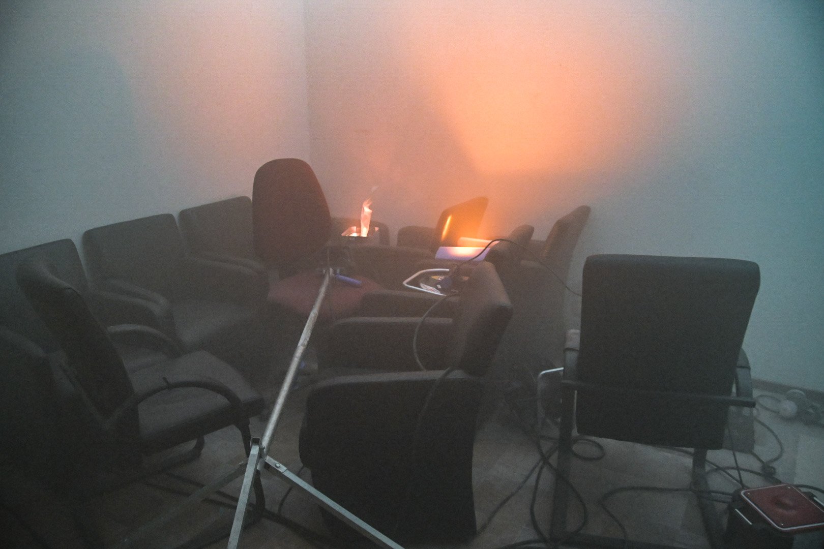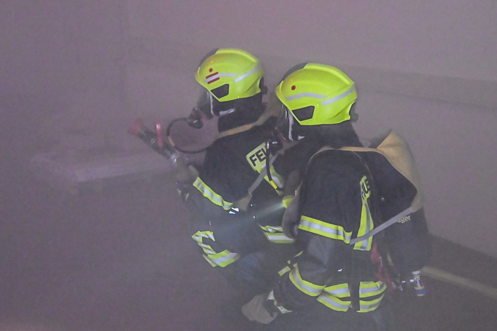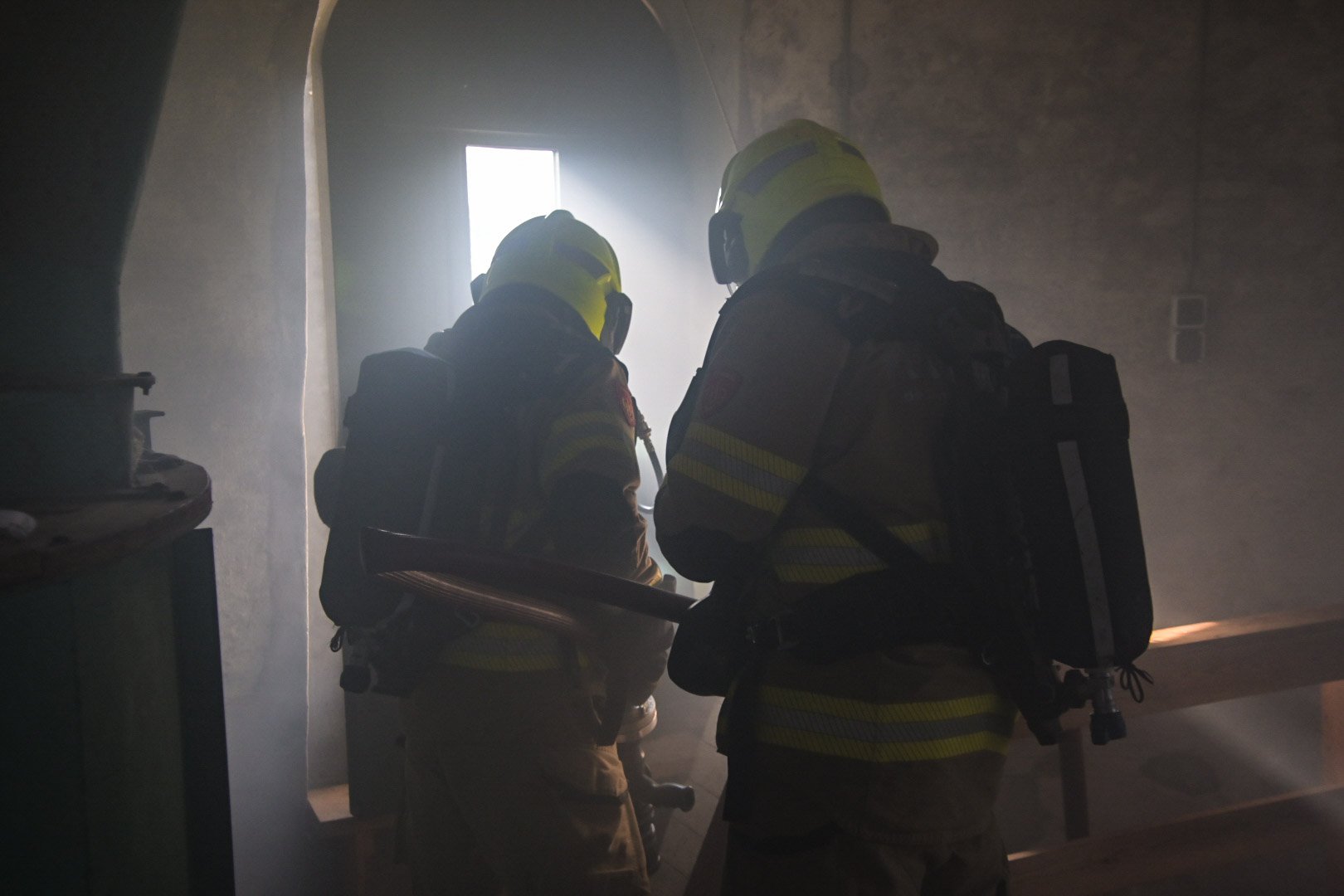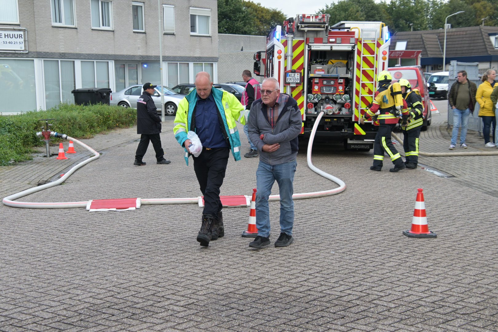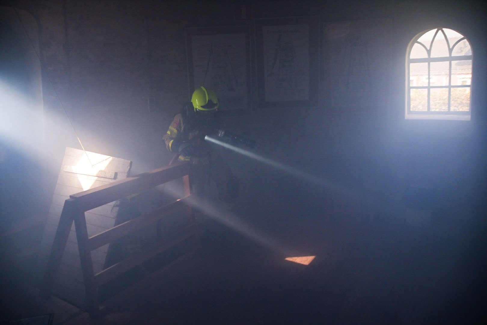 Op de Duitse baan viel een bouwlamp op de eerste verdieping op enkele stoelen, wat een brand veroorzaakte met rookontwikkeling die zich verspreidde naar de begane grond. Een medewerker probeerde de brand te blussen maar raakte bedwelmd door de rook. Op de begane grond was een andere medewerker bezig met zaagwerkzaamheden en verloor helaas zijn hand door een ongeluk met een cirkelzaag. Het was de taak van de teams om de slachtoffers, inclusief de verloren hand, in veiligheid te brengen en de brand te blussen.