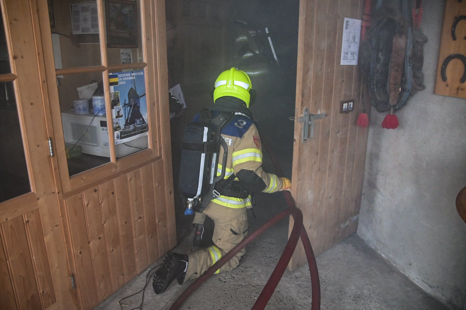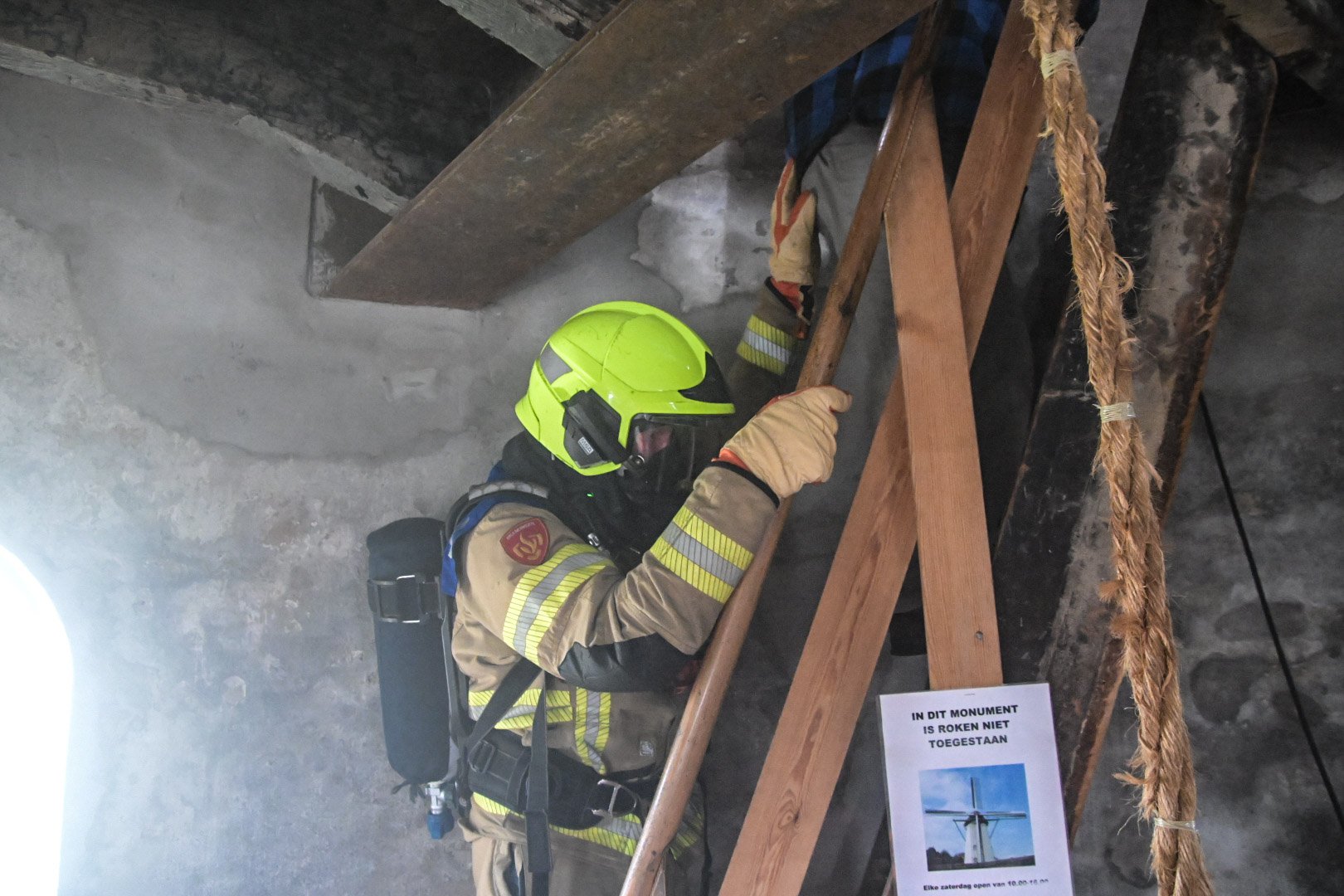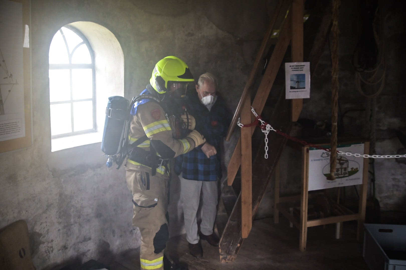 Op de Nederlandse baan brak er een brand uit in de machinekamer van de molen, wat leidde tot rookontwikkeling door het hele gebouw. De vuurlast veroorzaakte zelfs een doorbraak naar het platte dak. Een van de slachtoffers probeerde de brand op het dak te blussen en raakte bewusteloos. Op de derde verdieping probeerde een ander slachtoffer de molen snel tot stilstand te brengen, waarbij hij helaas zijn hand verloor.