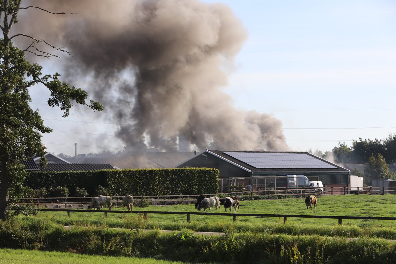 Grote brand bij agrarisch bedrijf zorgt voor zwarte rookwolken