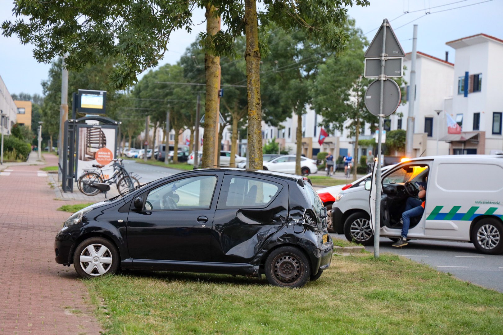 Lantaarnpaal valt op trolleyleiding na botsing tussen auto’s