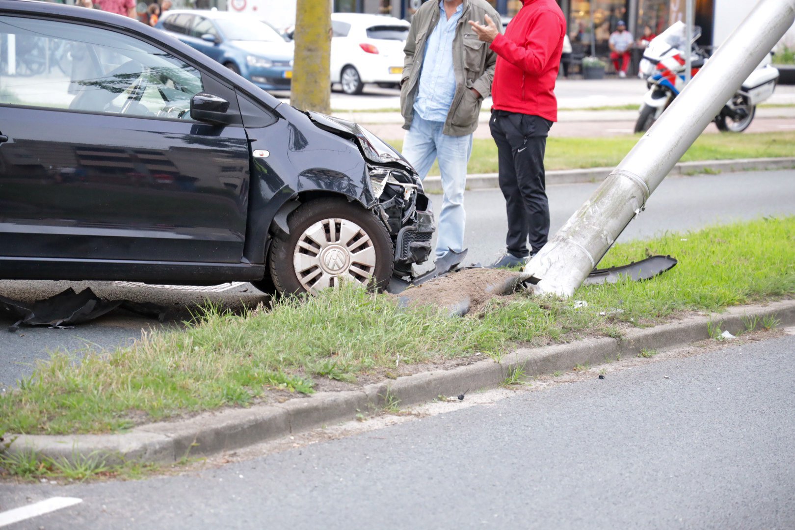 Volgens een agent raakte niemand ernstig gewond. De weg is dicht voor het bergen van de auto’s en het verwijderen van de lantaarnpaal.