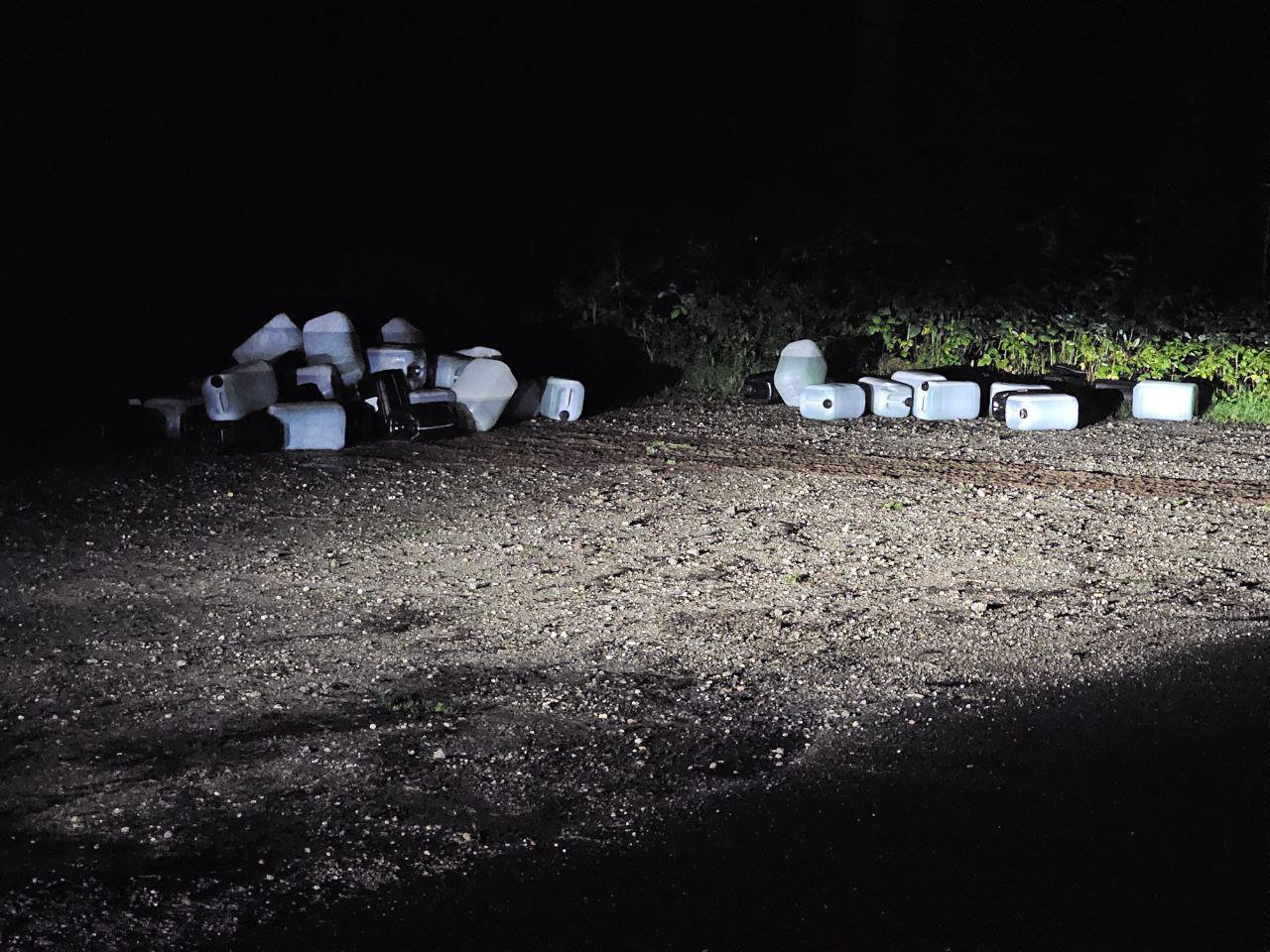 De inhoud van de vaten is op dit moment nog onbekend. Zowel de brandweer als de Officier van Dienst zijn ter plaatse om onderzoek te doen naar de inhoud van de vaten.