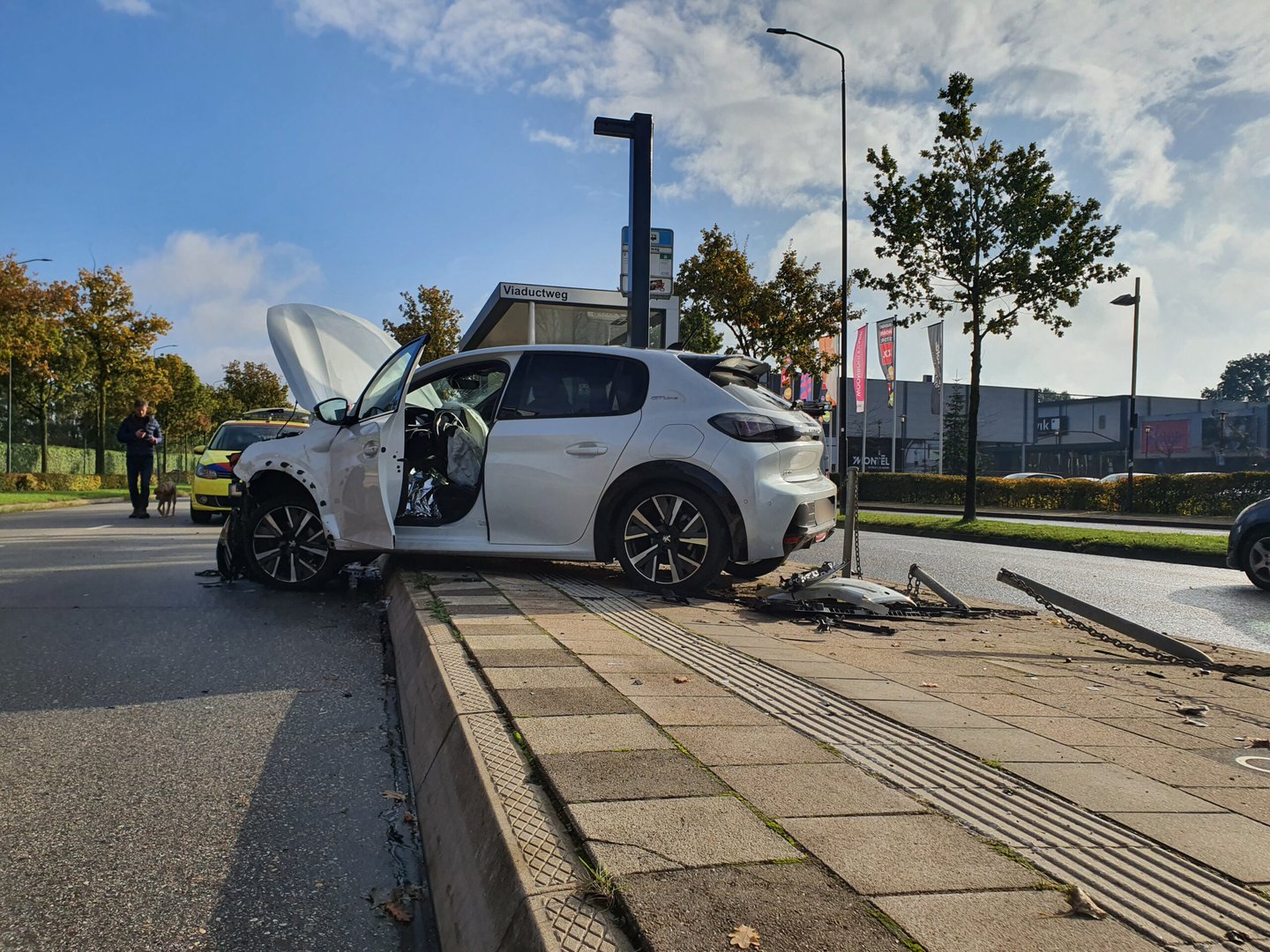 De bestuurster reed in de richting van de stad toen ze ter hoogte van de Viaductweg in de bocht van de weg raakte. De auto beschadigde enkele paaltjes en een fietsenrek met daarin een fiets, voordat deze tot stilstand kwam naast enkele mensen die op de bus stonden te wachten. Medewerkers met een bedrijfshulpverleningsachtergrond (BHV’ers) van een nabijgelegen bedrijf verleenden assistentie, terwijl ook de brandweer en politie snel ter plaatse waren. De bestuurster van de auto is door ambulancepersoneel onderzocht en voor verdere controle per ambulance naar het ziekenhuis gebracht. Een vrouw met een kinderwagen kwam ongedeerd uit het incident. Een slechtziende vrouw met haar geleidehond bevonden zich net opzij toen de auto de stoep op reed. Ze schrok hevig, maar een BHV’er sprak met haar en droeg haar over aan een verpleegkundige. Ze hoefde niet naar het ziekenhuis te worden gebracht en werd opgehaald door een bekende.