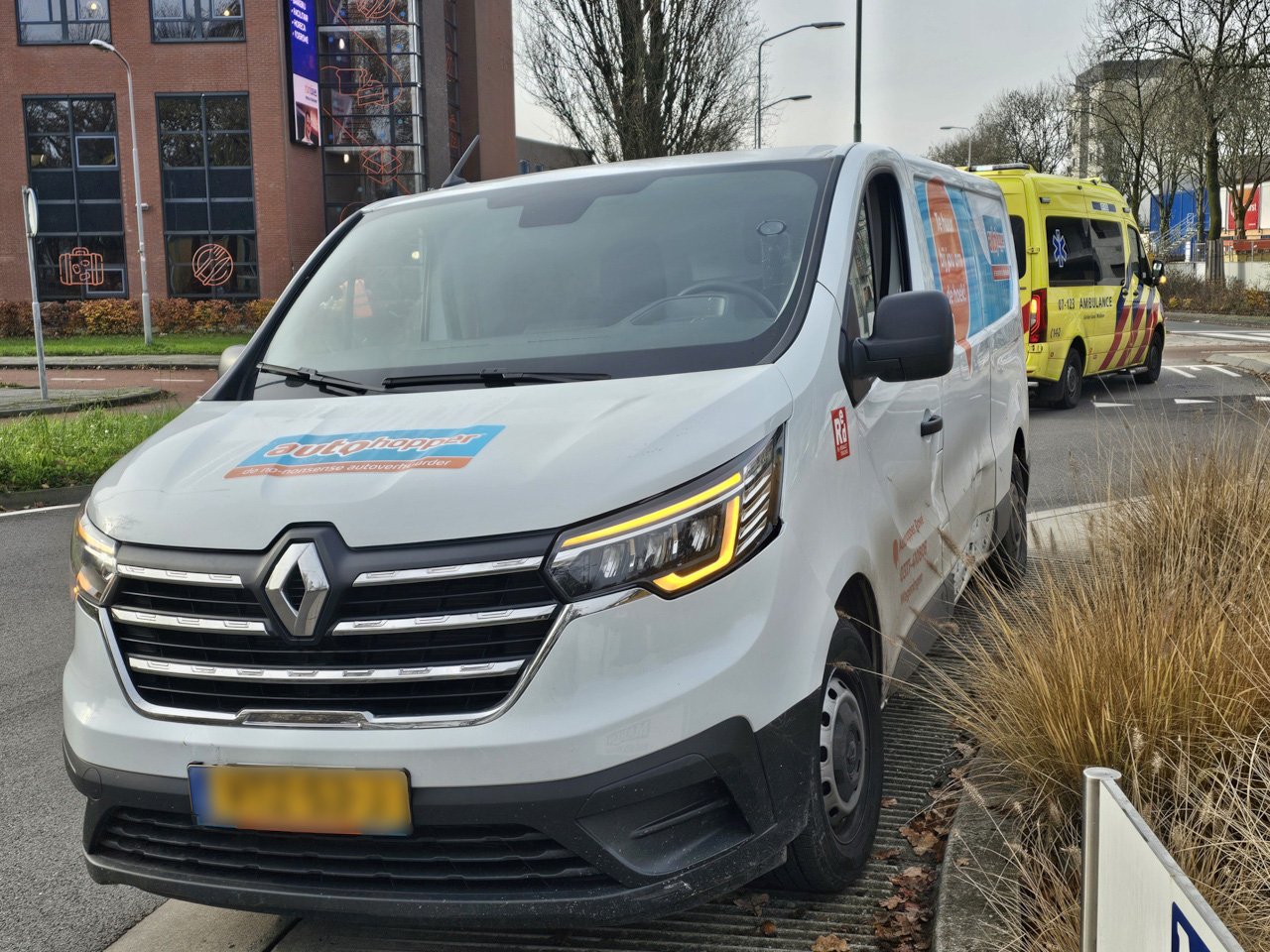 Aanrijding tussen bestelbus en fietser op rotonde