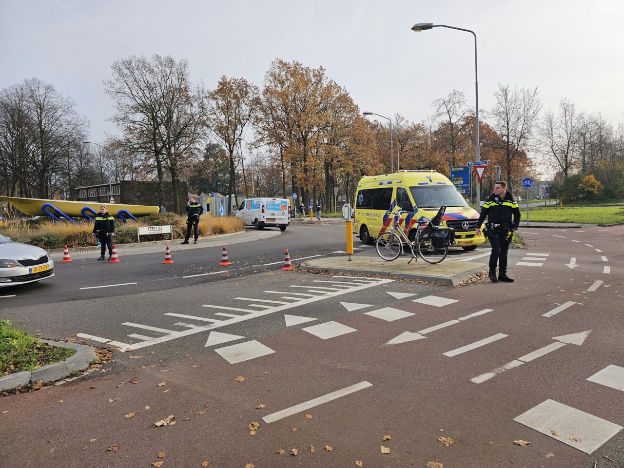WAGENINGEN – Op woensdagochtend vond er een aanrijding plaats tussen een fietser en een auto op de rotonde van de Marijkeweg en de Kortenoord Allee in Wageningen.