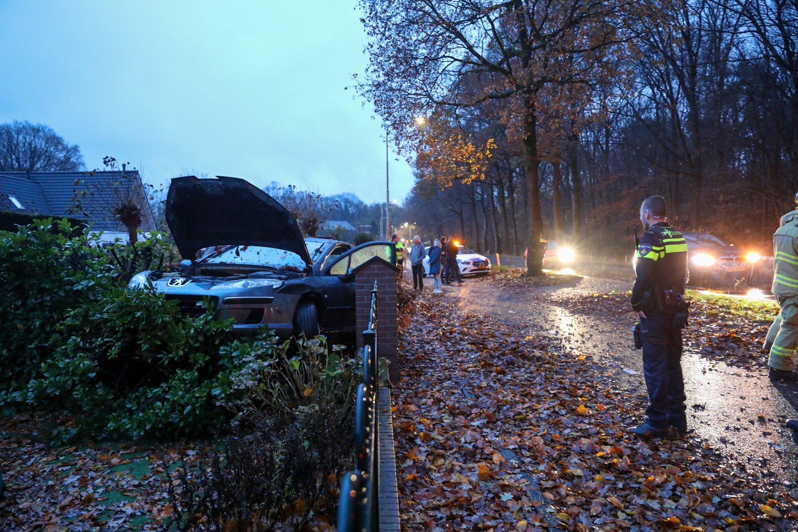 De man raakte lichtgewond bij het eenzijdige ongeval. De schade is aanzienlijk. De brandweer kwam ter plaatse vanwege een mogelijke autobrand maar dit bleek mee te vallen. Buurtbewoners waren behoorlijk boos omdat er vaker ongevallen gebeuren.
