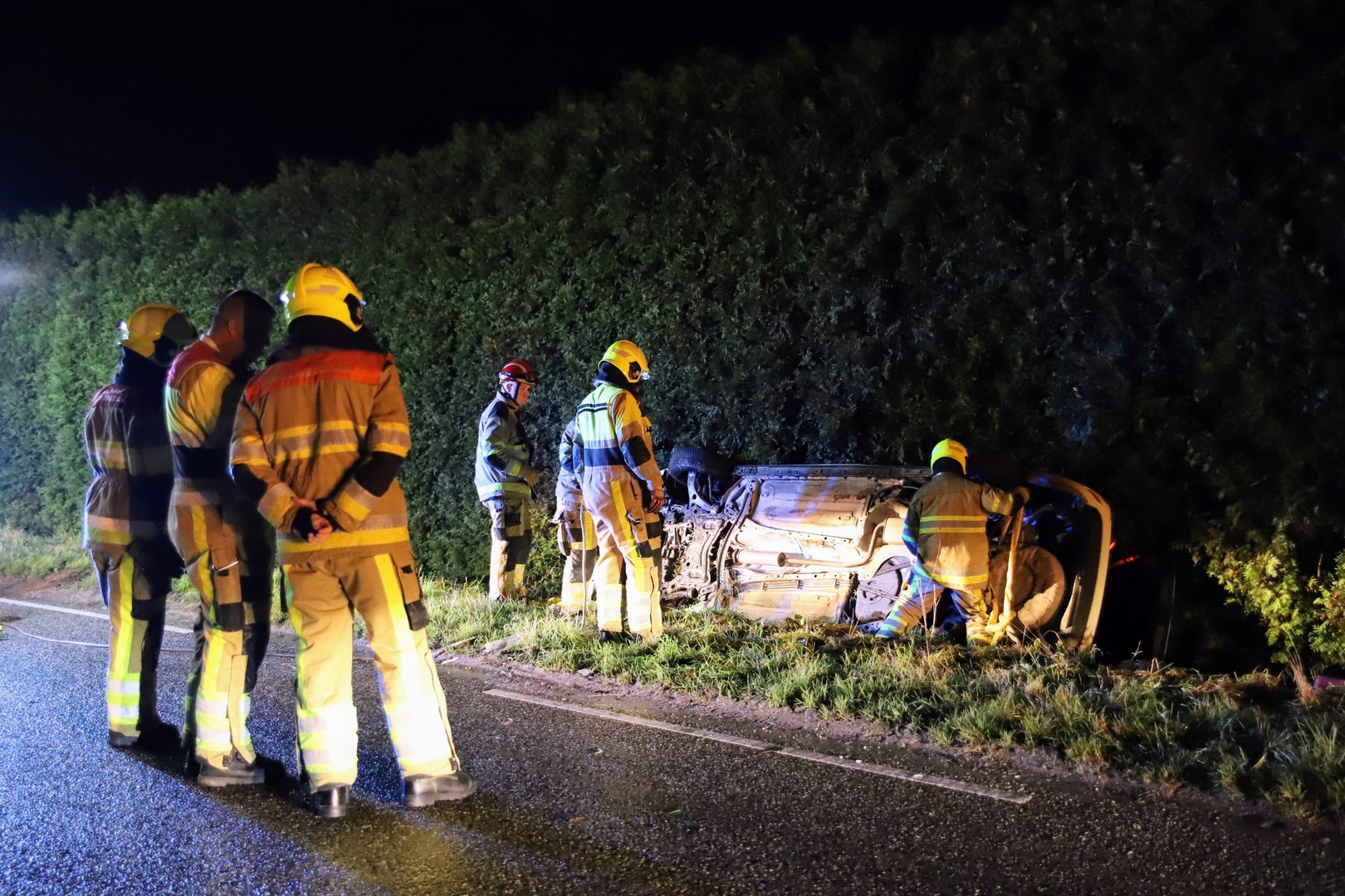 Automobilist verliest macht over stuur en belandt op z’n kant