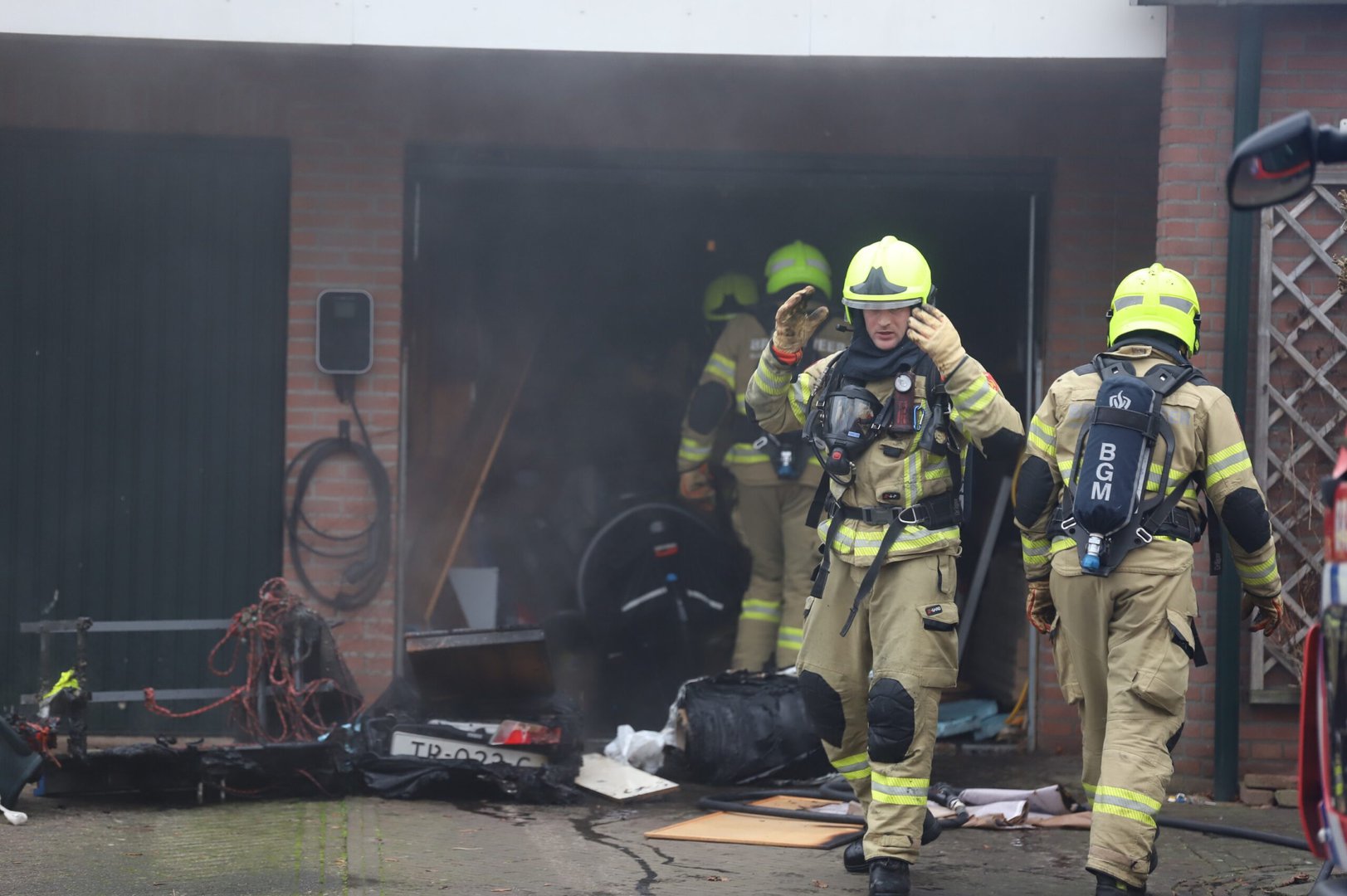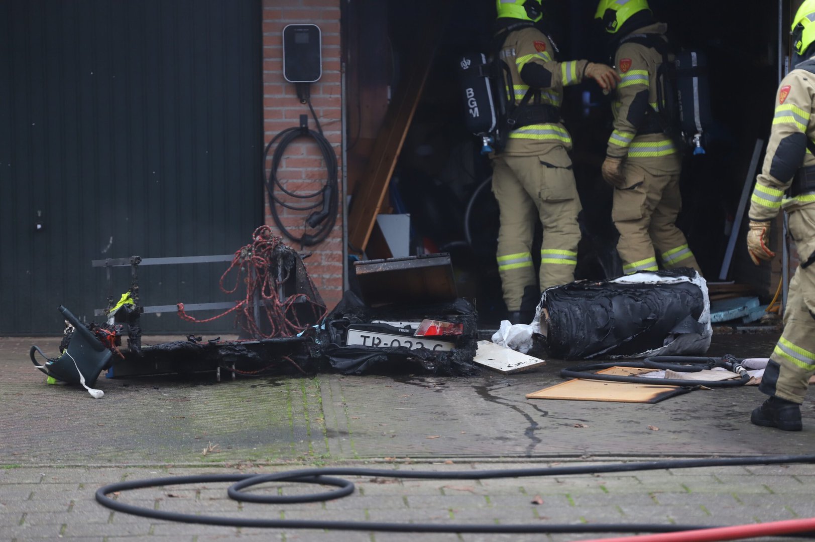 Later is de garage deur geopend en hebben ze een aanhanger naar buiten gehaald. De oorzaak is onbekend.