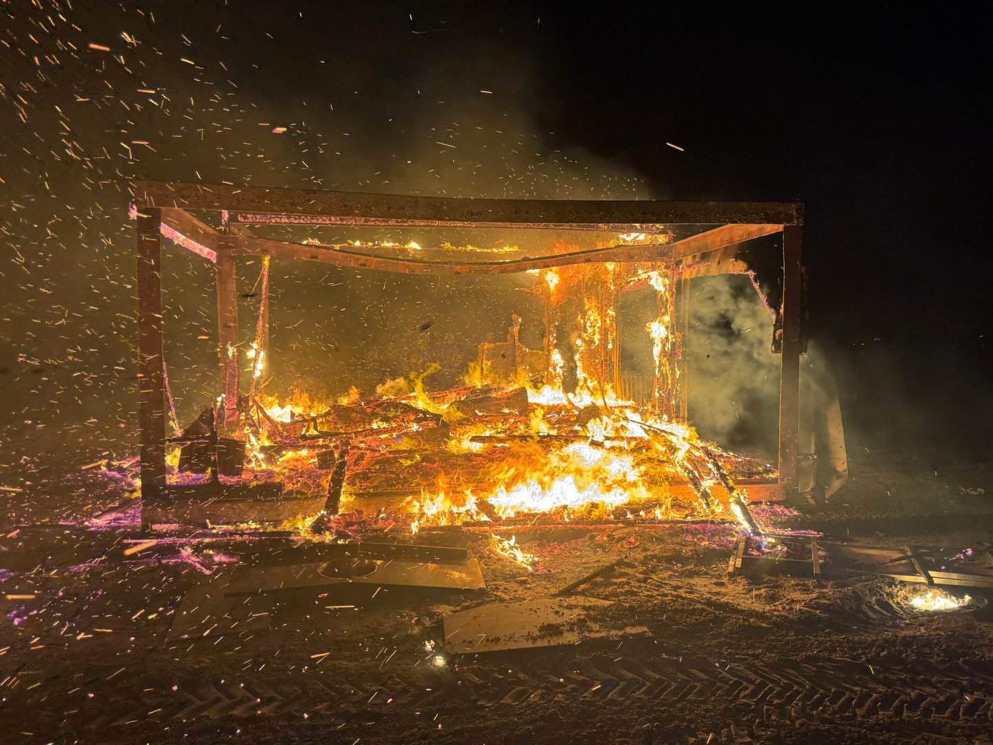 Brandweer laat bouwkeet gecontroleerd uitbranden