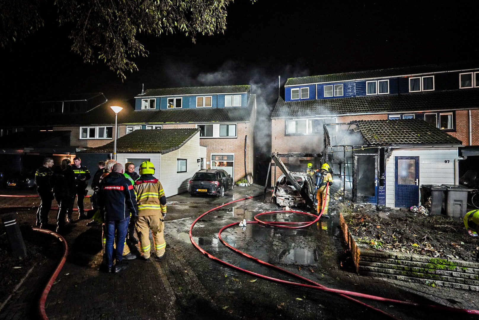 HUISSEN – Een felle brand heeft in de nacht van dinsdag op woensdag grote schade aangericht op de Dullert in Huissen. De brand, die rond 1:45 uur gemeld werd, verwoestte een auto, carport en schuur volledig. Daarnaast raakten twee woningen beschadigd.