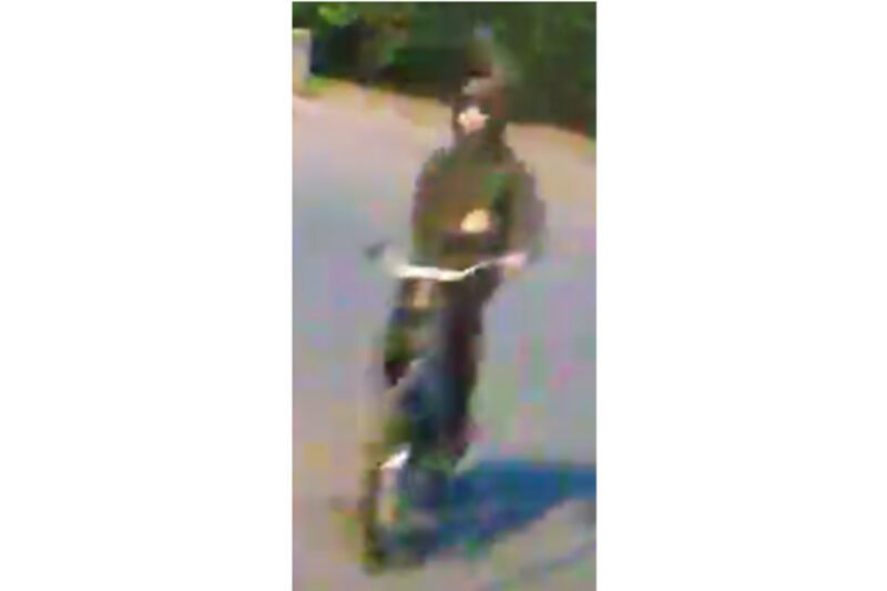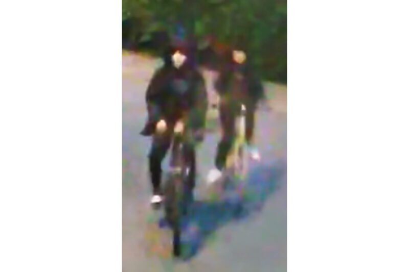 Dader 2. Ongeveer 1.65 meter lang. Hij droeg een capuchon, lichte stof voor gezicht, donkere jas, donkere trainingsbroek, witte sneakers en een rugzak. Hij fietste op een lichtkleurige (mogelijk dames)fiets met lichte banden.