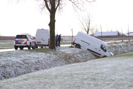 Door de gladheid raakte een bestelbus van de weg en belandde in de sloot. Hierbij raakte niemand gewond.