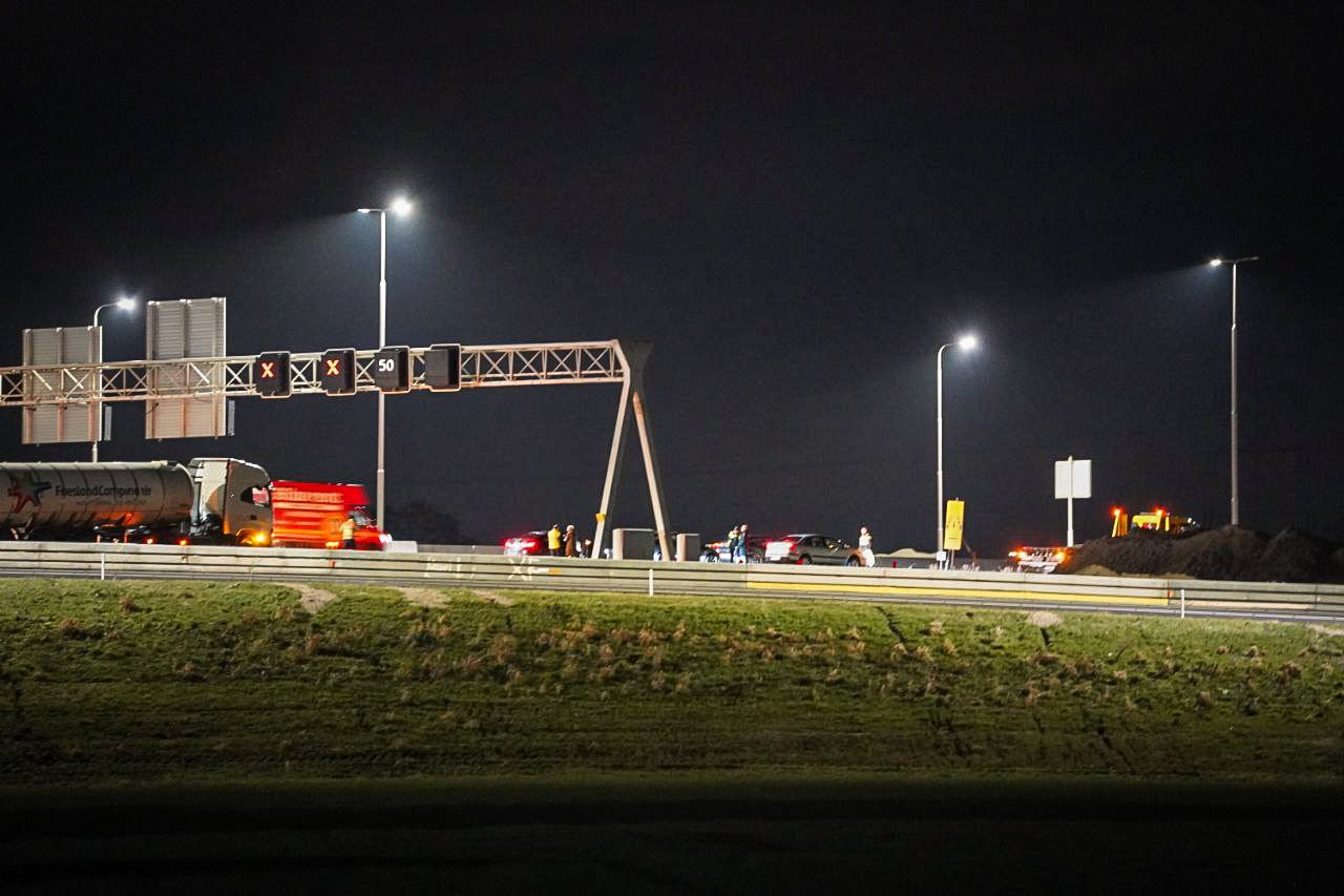 Een vrachtwagenchauffeur raakte de vangrail, waardoor er brokstukken op de snelweg belandden en meerdere auto’s beschadigd raakten.