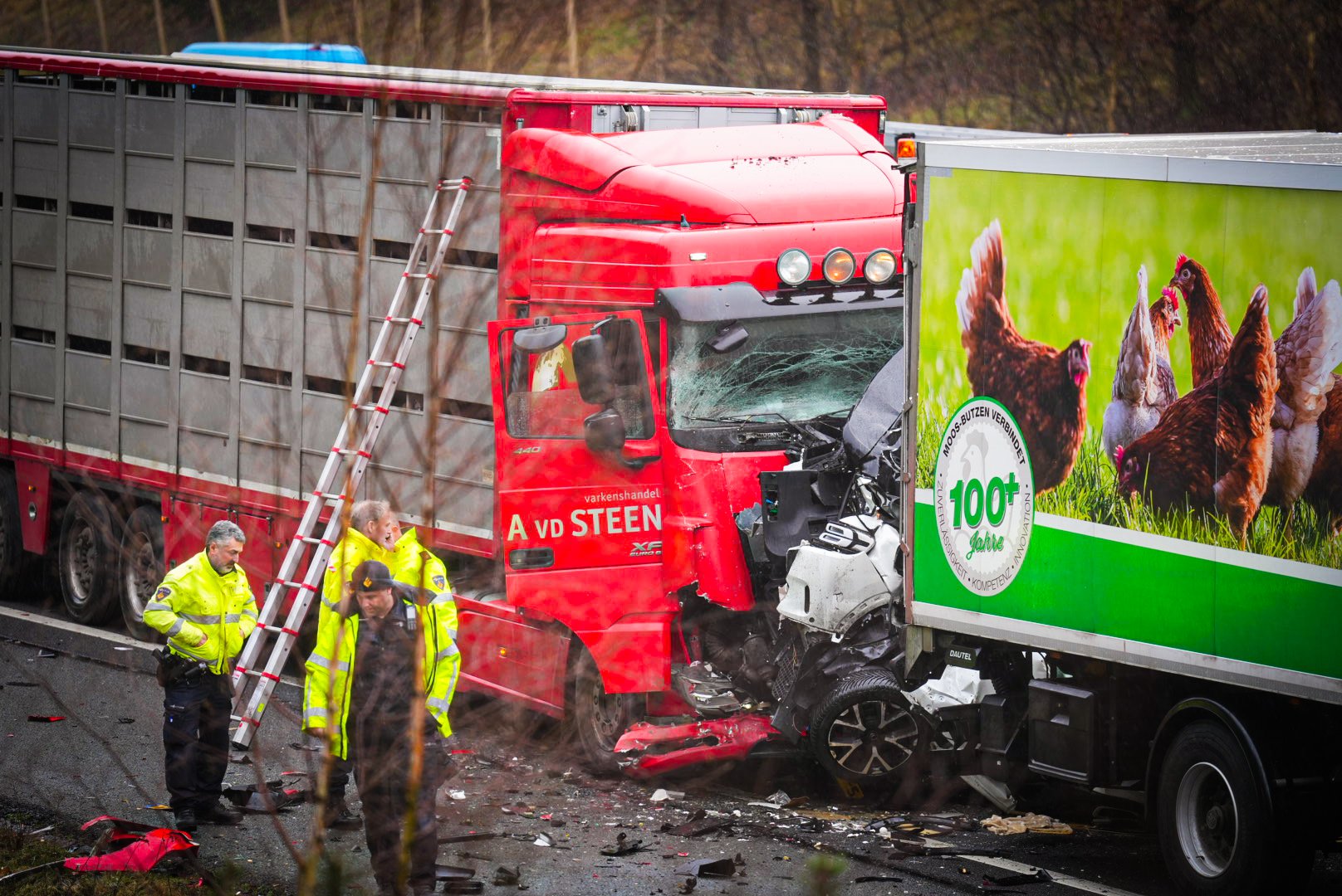 Het ongeluk vond plaats om 10.20 uur, toen een auto klem kwam te zitten tussen twee vrachtwagens. De bestuurder van een van de vrachtwagens is door de politie aangehouden.
