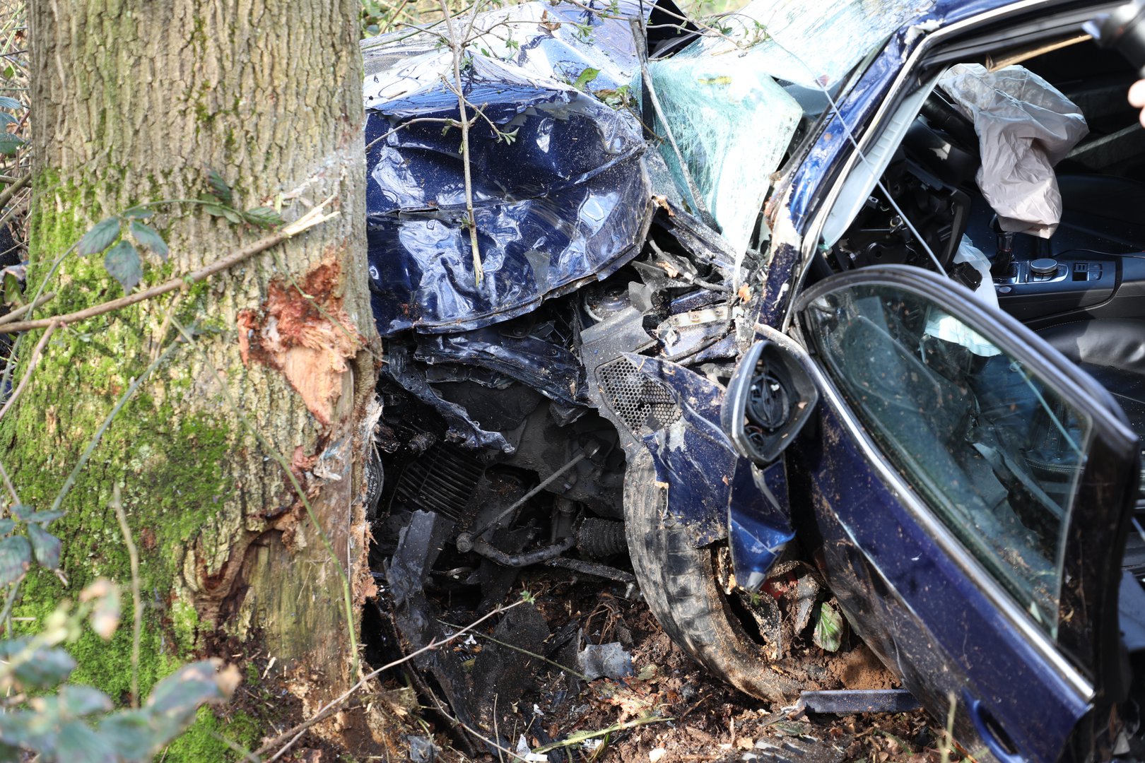 BARNEVELD – In het bosgebied tussen Barneveld en Terschuur aan de Kallenbroekerweg is zondagmiddag rond 15:30 uur een jonge bestuurder hard op een boom gebotst.