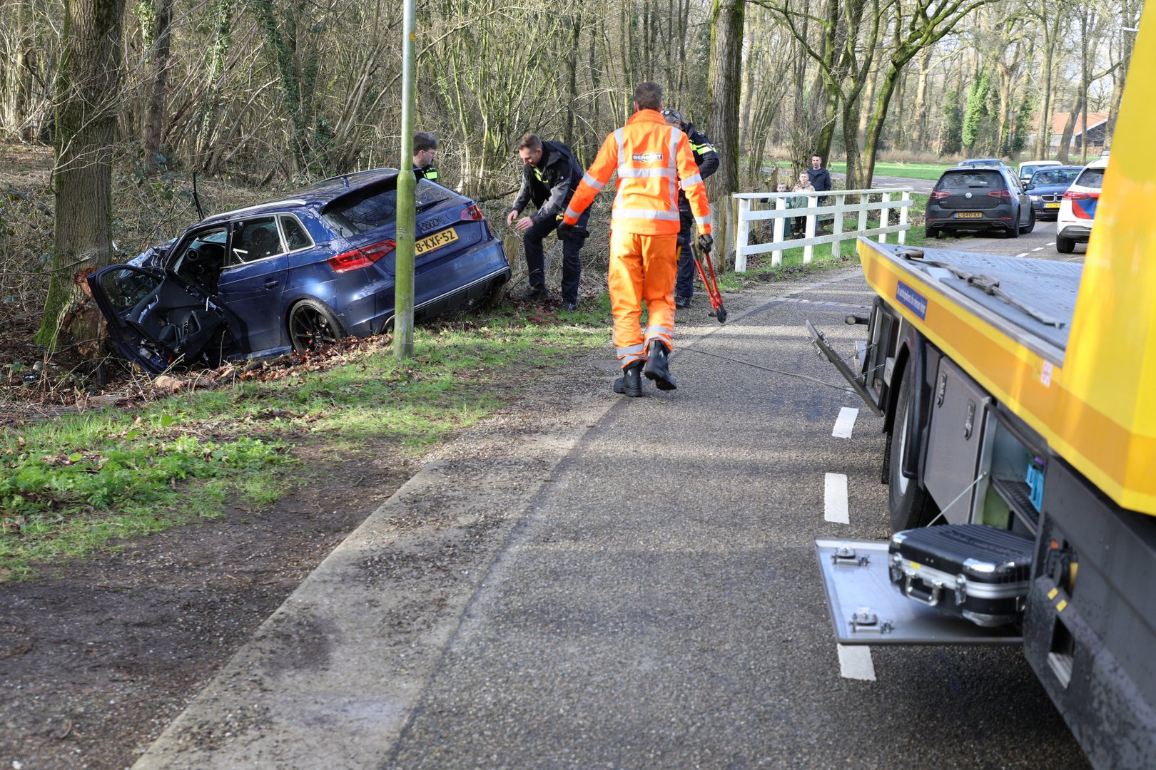 De man knalde in de bocht op de boom en moest per ambulance naar het ziekenhuis gebracht worden. De schade aan de auto is aanzienlijk. Door de botsing was de Kallenbroekerweg afgesloten voor het verkeer.