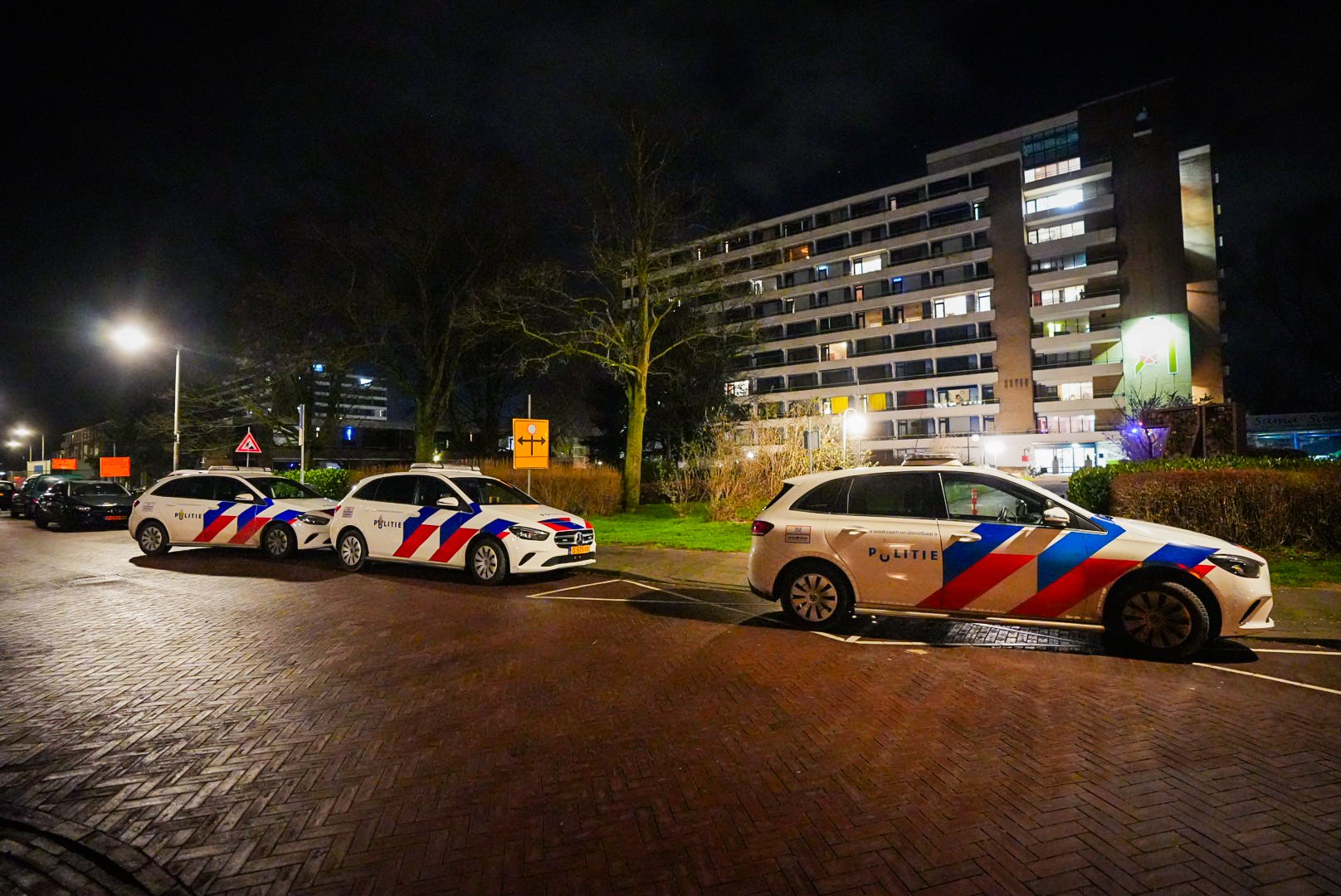 De politie heeft direct een verdachte kunnen aanhouden. Deze zat onder het bloed, wat te zien was terwijl hij geboeid in de politiebus stapte.