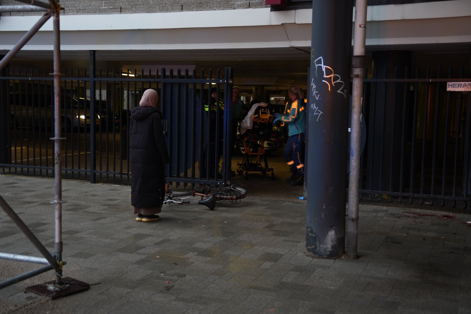 De fiets belandde daarbij boven op iemand die onder de brug liep. Het slachtoffer is gewond geraakt. Het ambulancepersoneel heeft de gewonde persoon overgebracht naar het ziekenhuis.