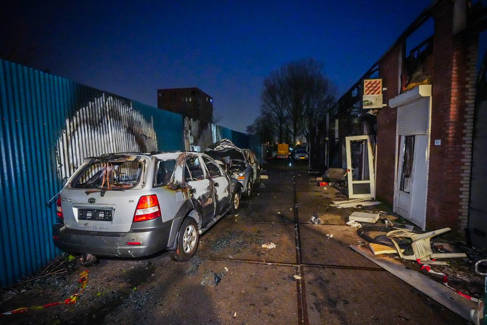 Rond 5.50 uur werd de brandweer gealarmeerd. Ze hebben het vuur geblust. De sloopauto die daar nog stond is in vlammen opgegaan. Zondag vroeg in de ochtend ging er een ander auto ook al in vlammen op. Naar alle waarschijnlijkheid zijn beide voertuigen in brand gestoken.