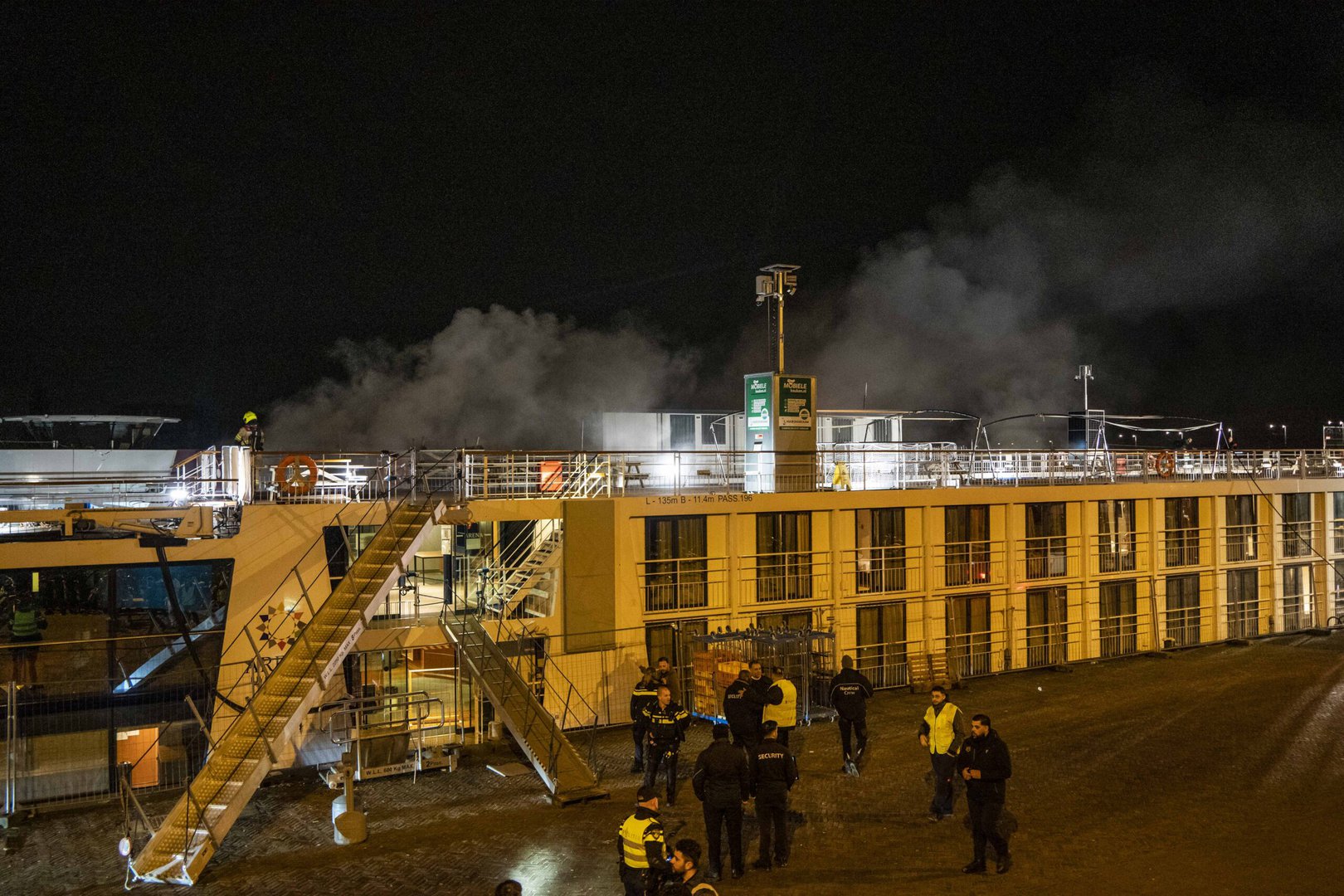 De brandweer heeft het schip ontruimd, evenals een naastgelegen vaartuig waar ook asielzoekers worden gehuisvest. “Alle mensen zijn veilig van de boten afgekomen.