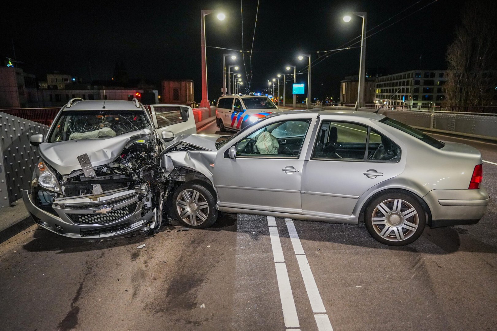 ARNHEM – Op de John Frostbrug in Arnhem heeft in de nacht van donderdag op vrijdag een frontale aanrijding plaatsgevonden.