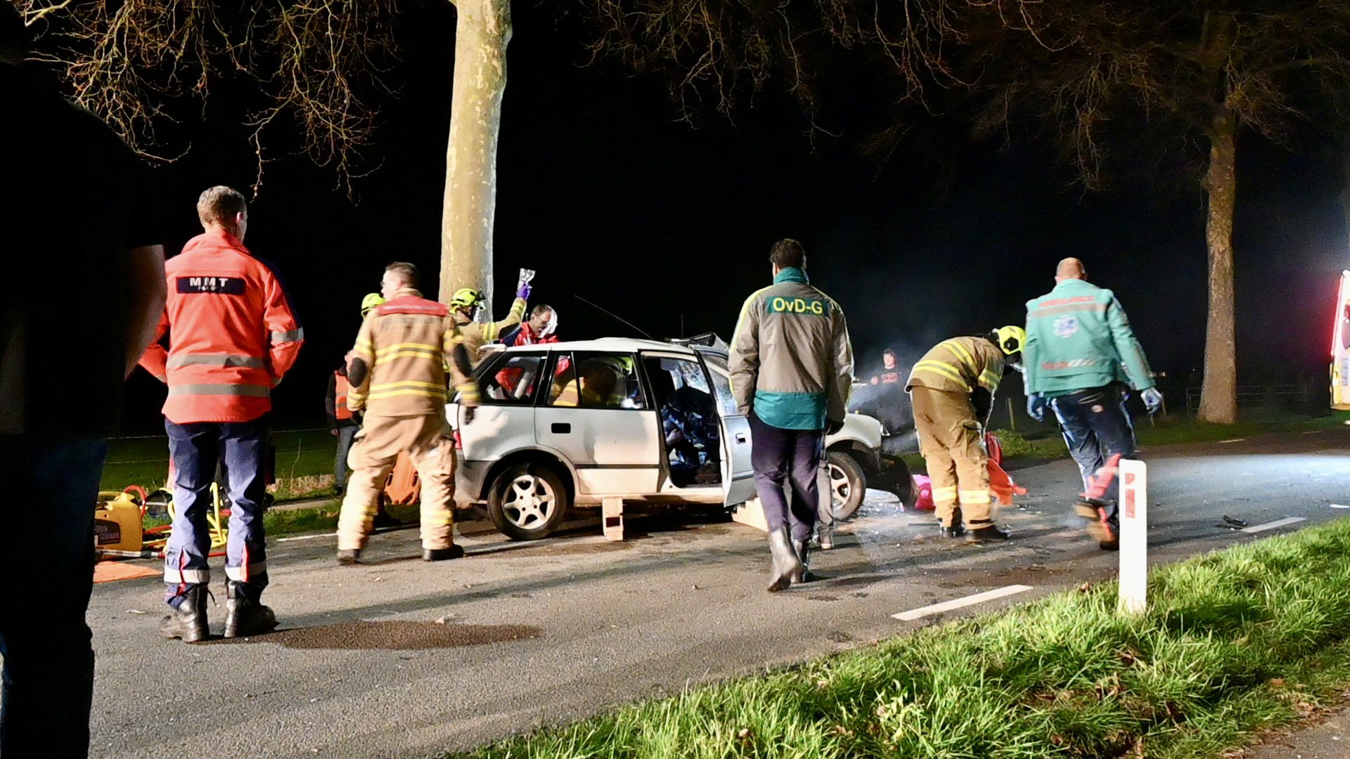 Het aanwezig ambulance personeel werd ondersteund door de bemanning van de traumahelikopter. De automobilist is met onder andere verwondingen aan zijn benen Naar Een ziekenhuis vervoerd.