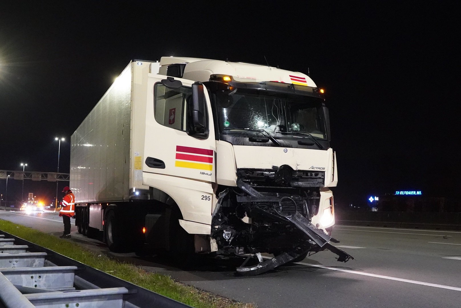 Even voor 02:00 uur ging het helemaal mis toen een vrachtwagen Op een stilstaande auto knalde. Volgens de vrachtwagenchauffeur stond de auto daar zonder verlichting stil op de rijbaan. De chauffeur kon niet meer op tijd remmen botste achter op de auto en kwam ruim 100 meter verderop tot stilstand. De bestuurder van de auto raakte hierbij gewond en is met spoed naar het ziekenhuis in Ede gebracht.