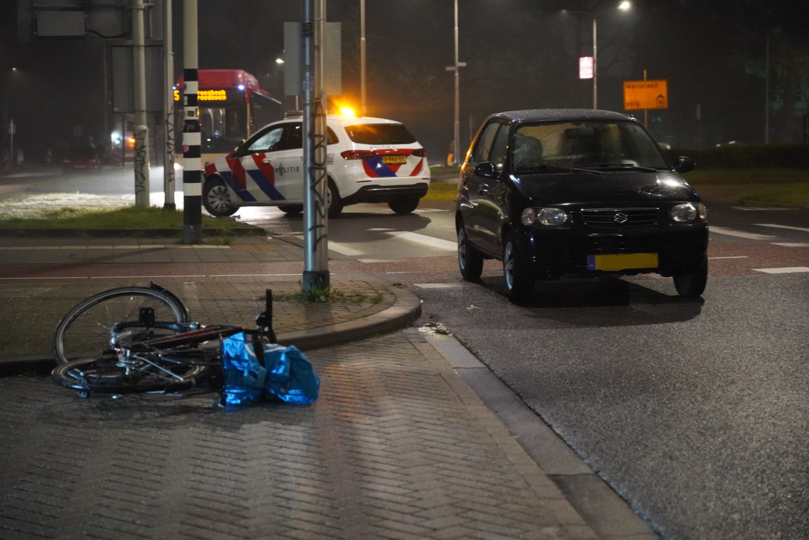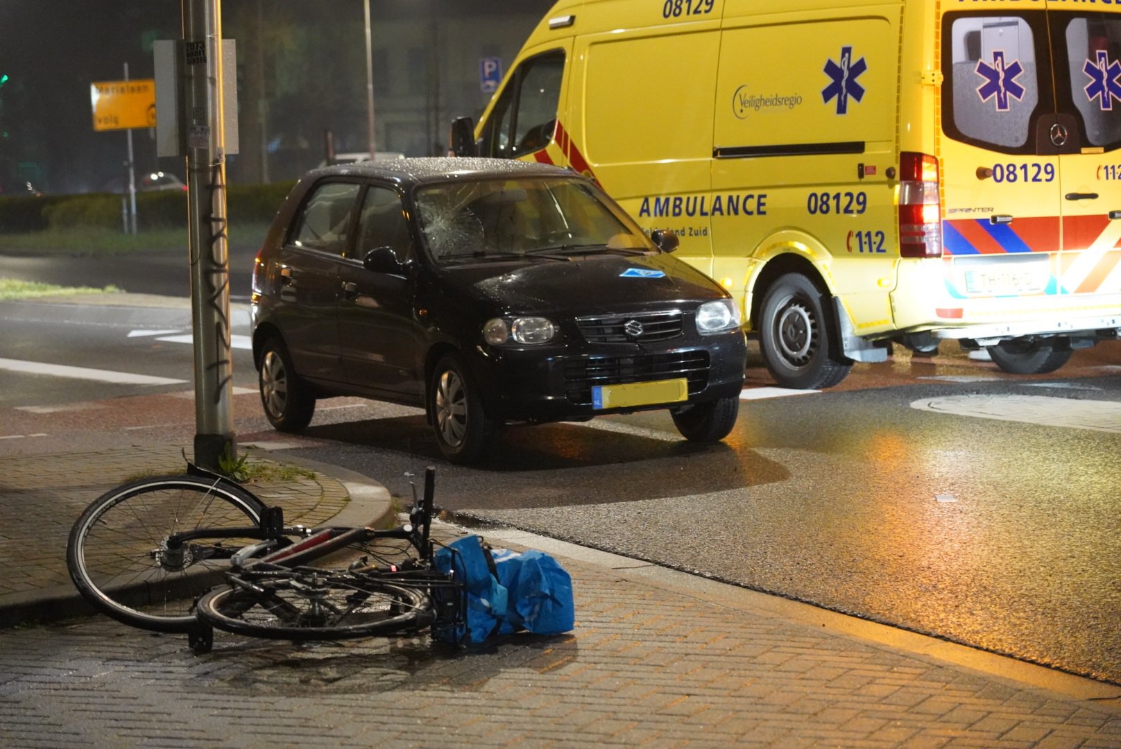 Eenmaal ter plaatse was er een fietser aangereden door een auto. De fietser is met verwondingen naar het ziekenhuis gebracht. De auto heeft een deuk in de voorruit. Hoe het ongeval heeft kunnen gebeuren is onbekend. Het ongeval gebeurde op het zebrapad waar wandelaars en fietsers over mogen steken. De politie heeft enige tijd één rijbaan afgesloten.