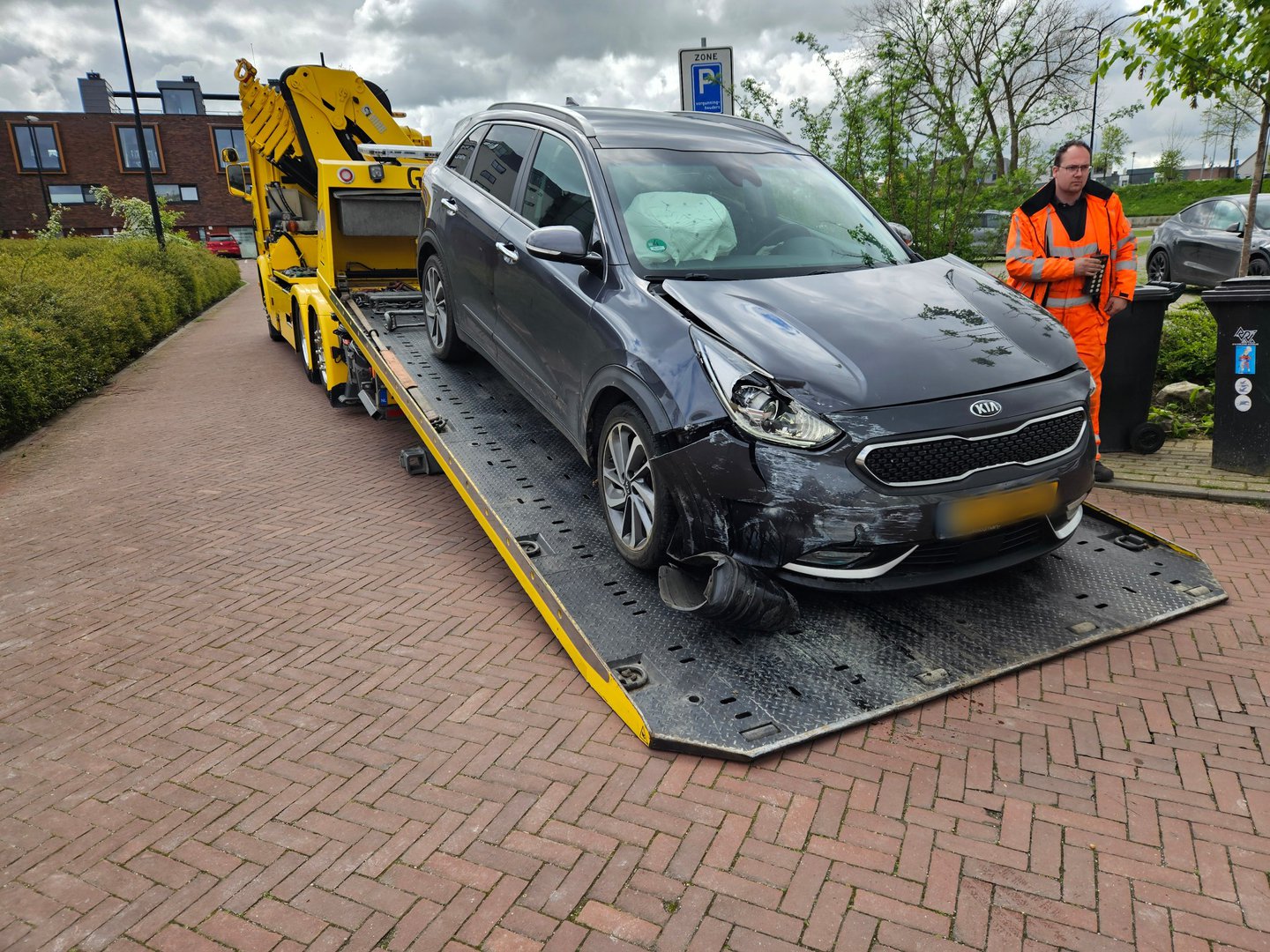 Het voertuig is afgesleept door de berger.