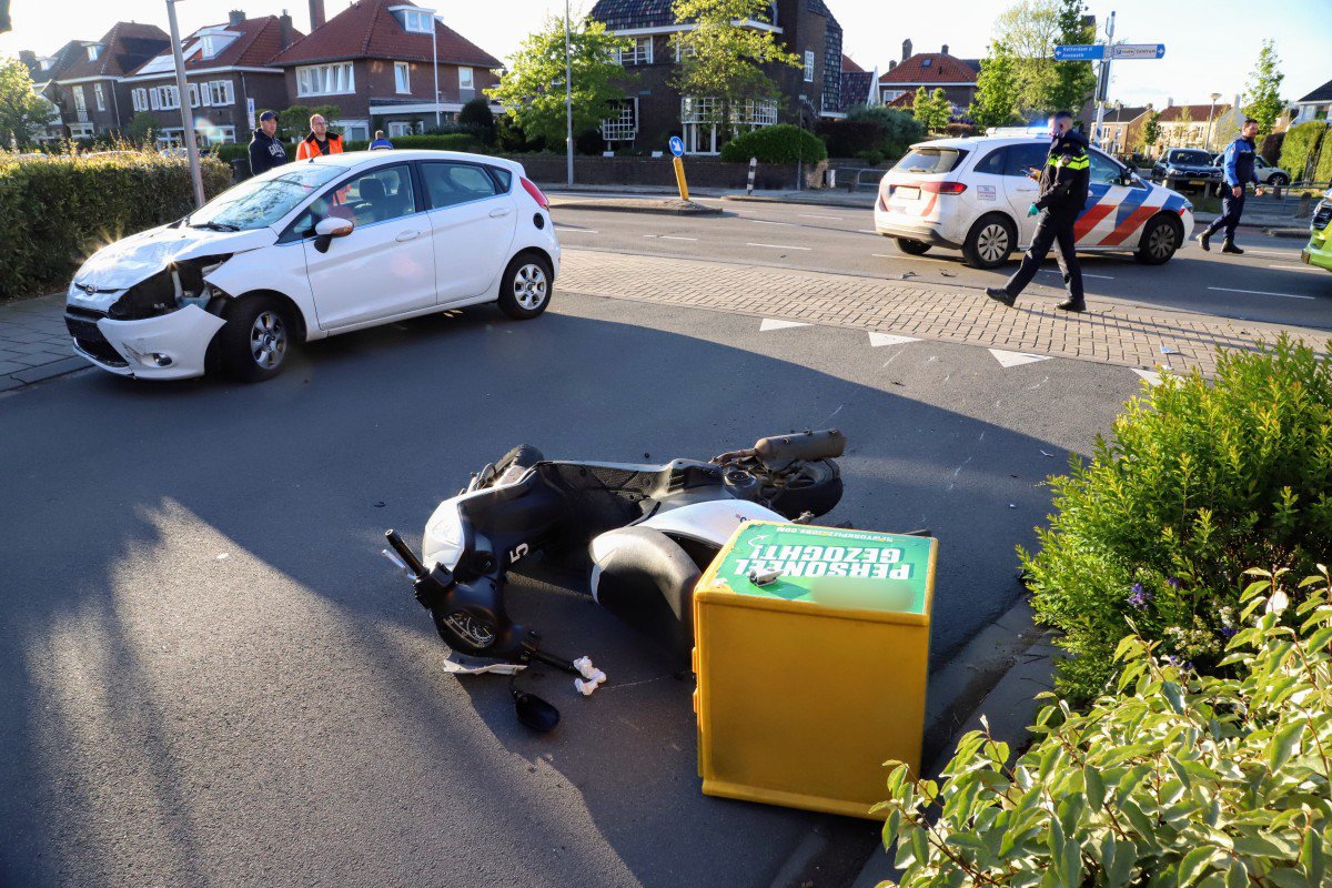 Hierbij botsten een bezorgscooter en een personenauto tegen elkaar. De scooterrijder kwam ten val en is met de ambulance overgebracht naar het ziekenhuis.