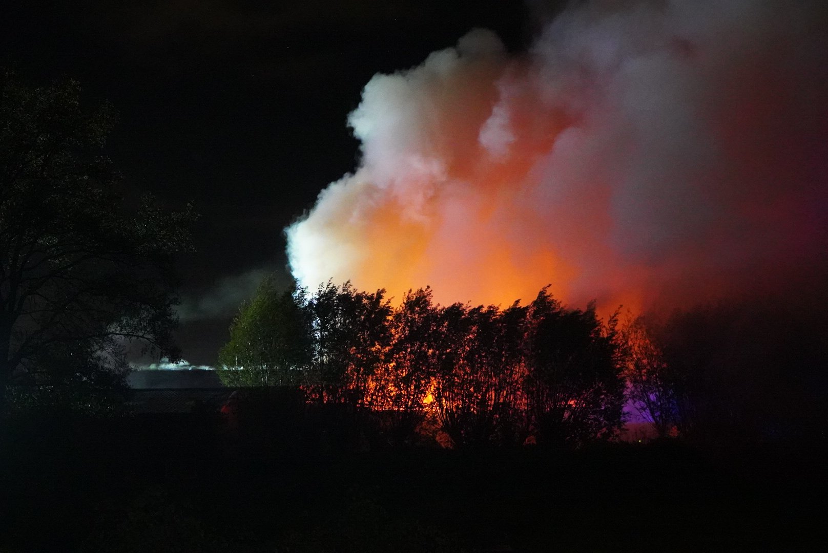 Grote uitslaande brand in loods van hoveniersbedrijf