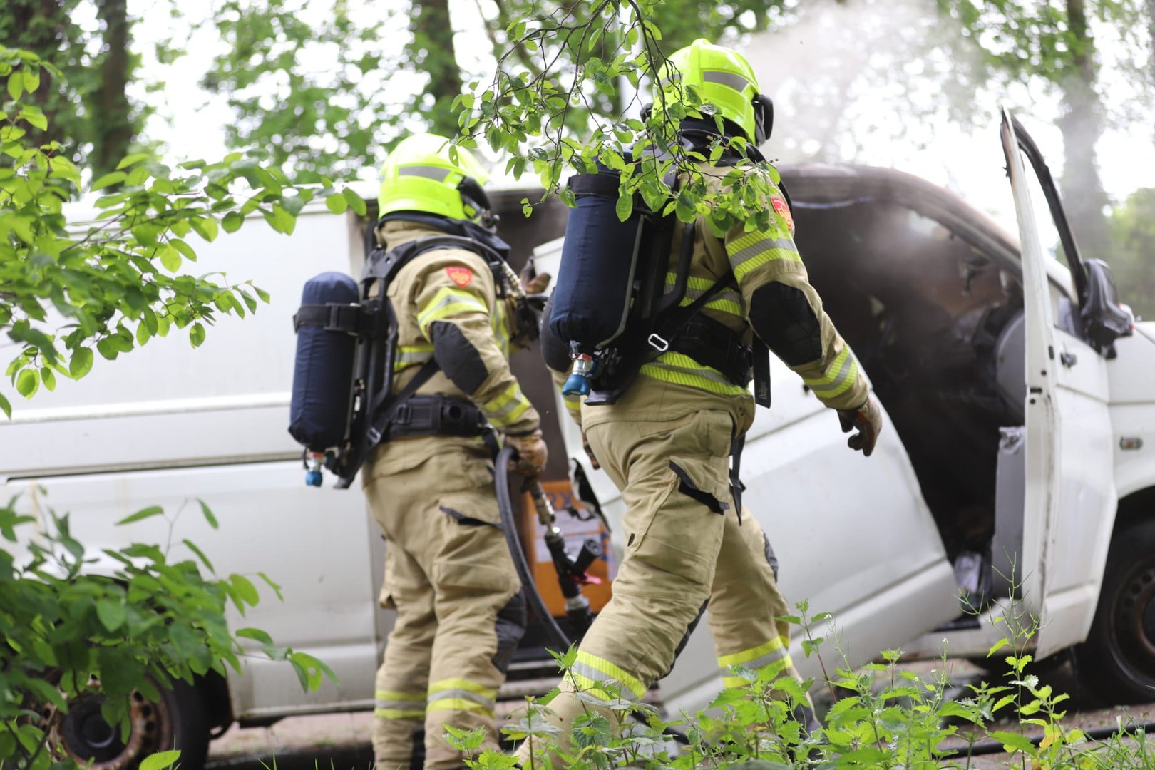 Achter gelaten bestelbus vermoedelijk in brand gestoken