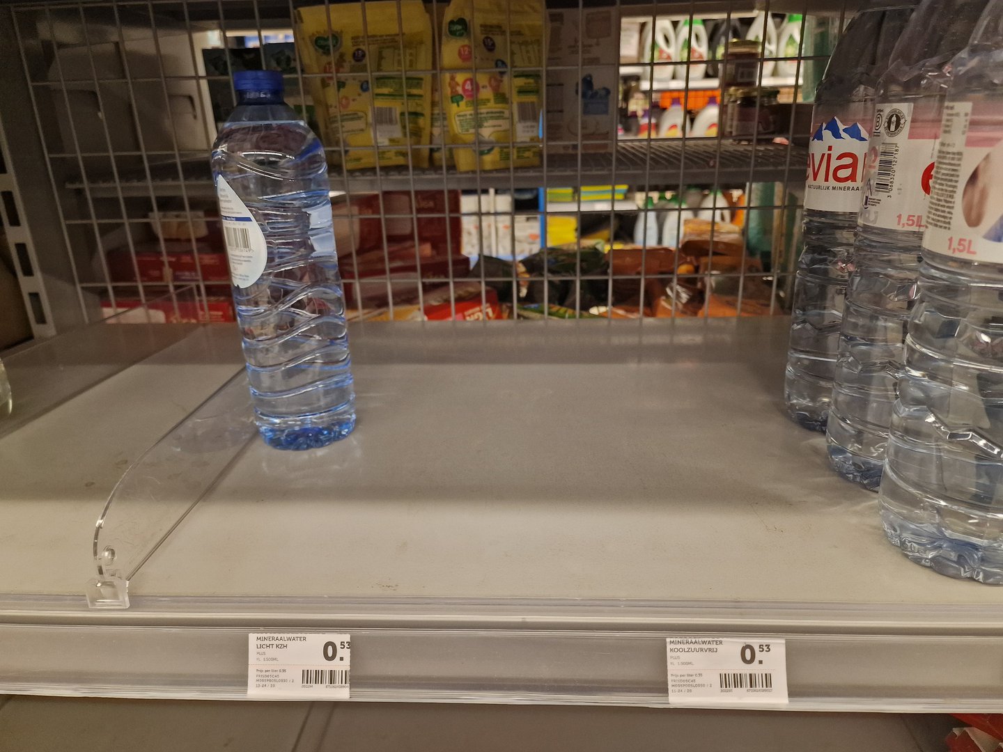 Inwoners zijn massaal flessen water bij supermarkten aan het inslaan, dit zorgt in een aantal supermarkten al voor lege schappen.