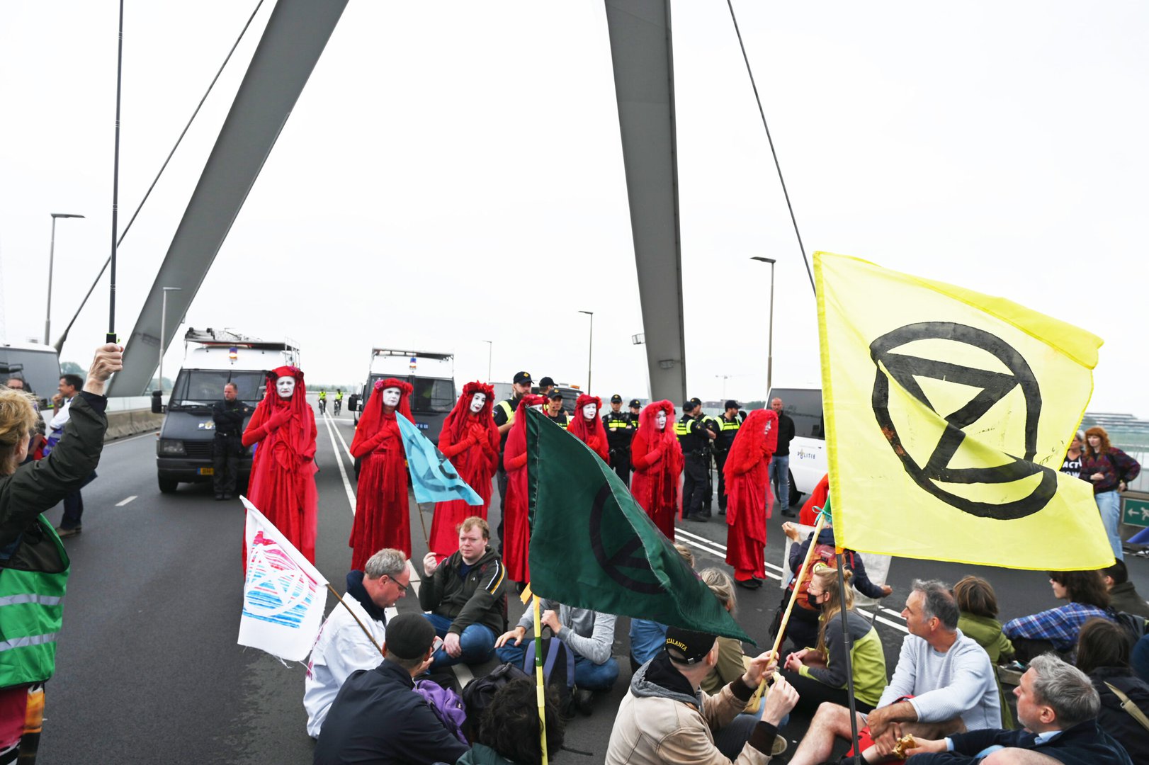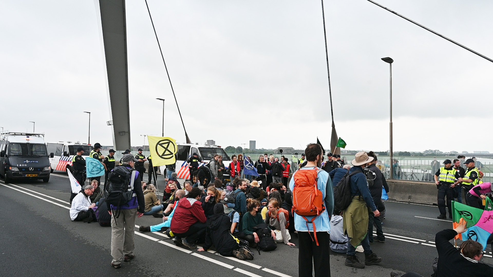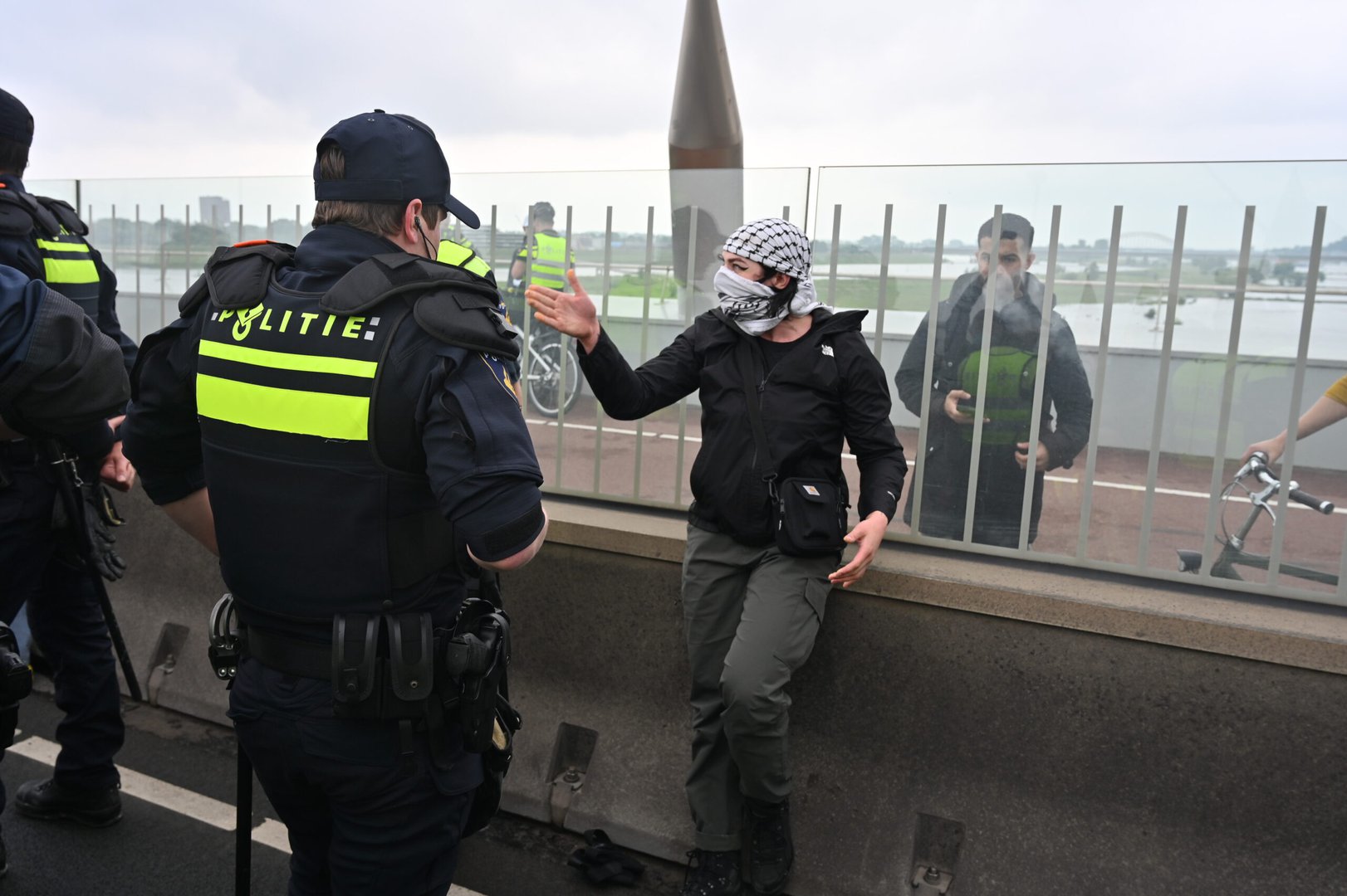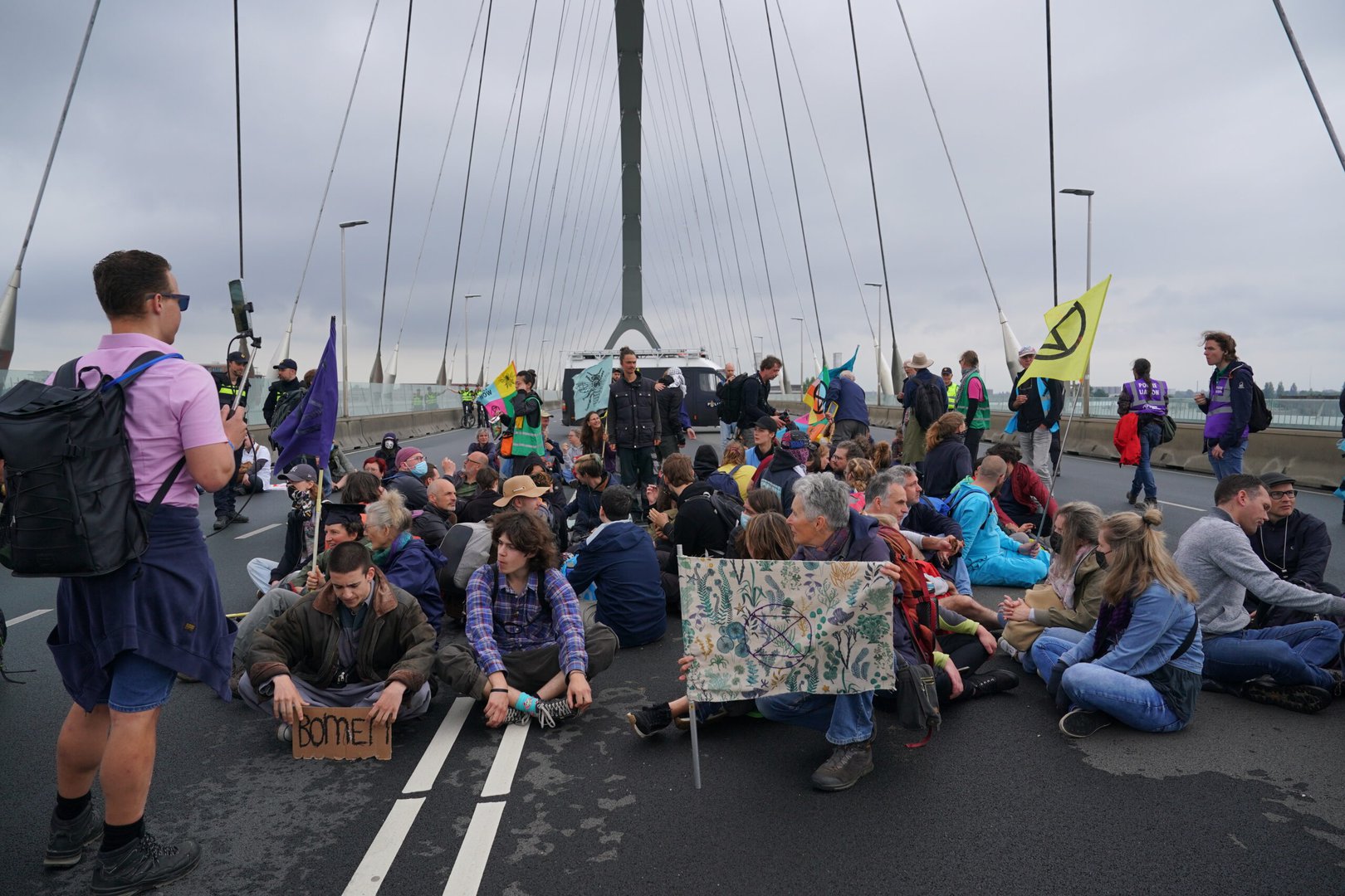 Een van de demonstranten had zichzelf aan de brug vastgebonden, maar werd door de politie losgemaakt. De demonstranten moesten vervolgens plaatsnemen in een bus die op De Oversteek stond.