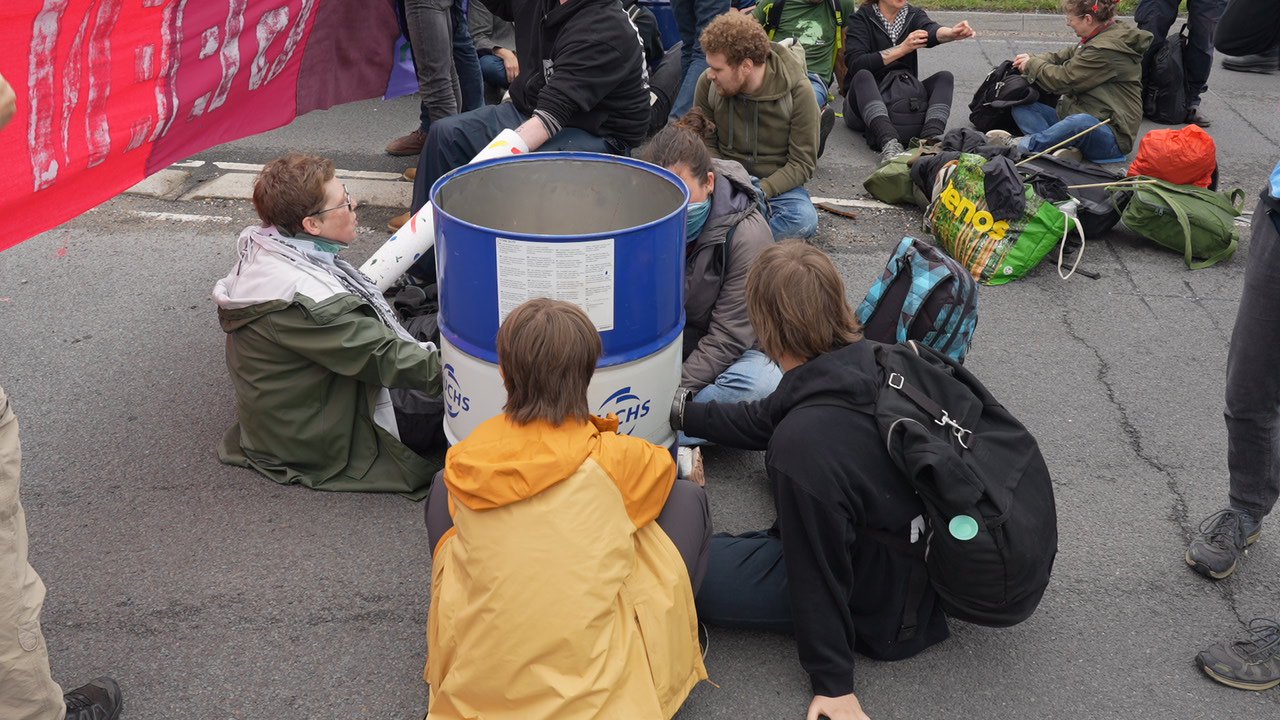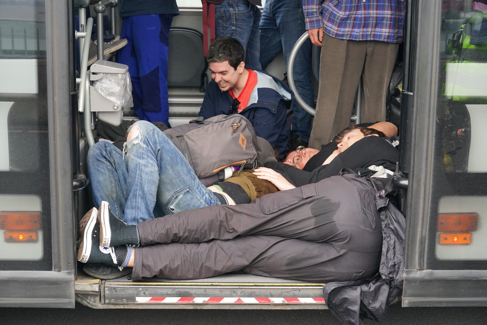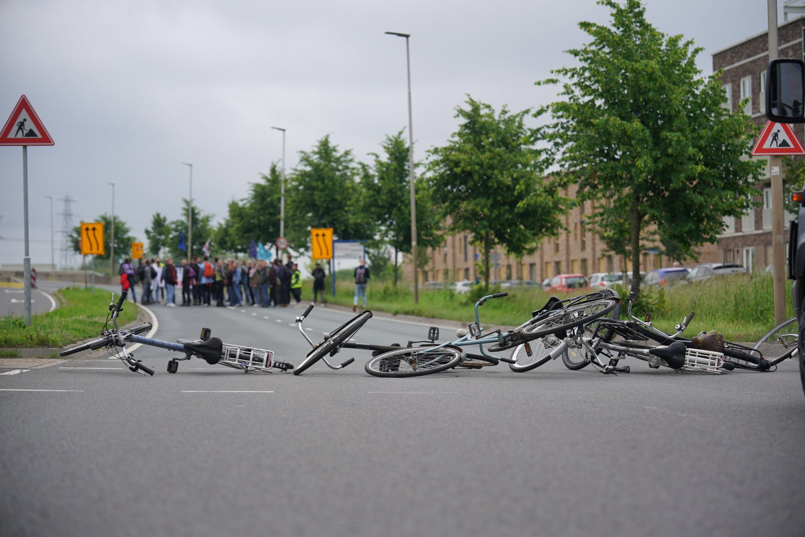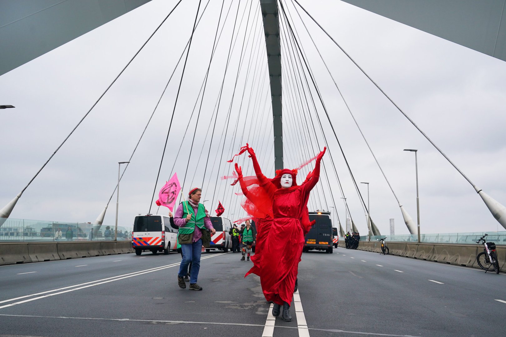 Een van de demonstranten had zichzelf aan de brug vastgebonden, maar werd door de politie losgemaakt. De demonstranten moesten vervolgens plaatsnemen in een bus die op De Oversteek stond.