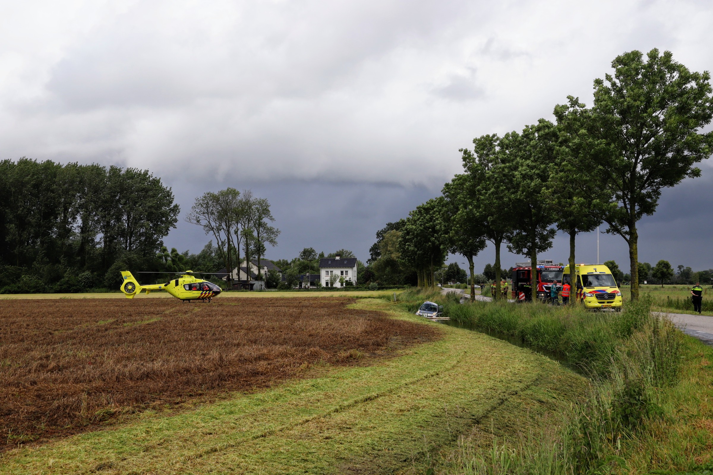 Het bleek te gaan om een eenzijdig ongeval, waarbij een auto een boom raakte en vervolgens in de sloot terechtkwam. De automobiliste kon niet zelfstandig uit haar voertuig komen. De brandweer heeft hiervoor een deur moeten verwijderen. Ze is met de ambulance overgebracht naar het ziekenhuis. De traumahelikopter kwam ter plaatse voor medische assistentie.