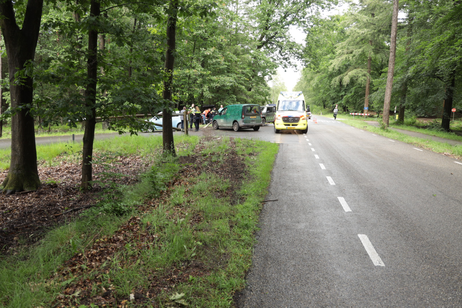 Auto raakt van de weg, ramt paaltjes en komt tot stilstand tegen boom