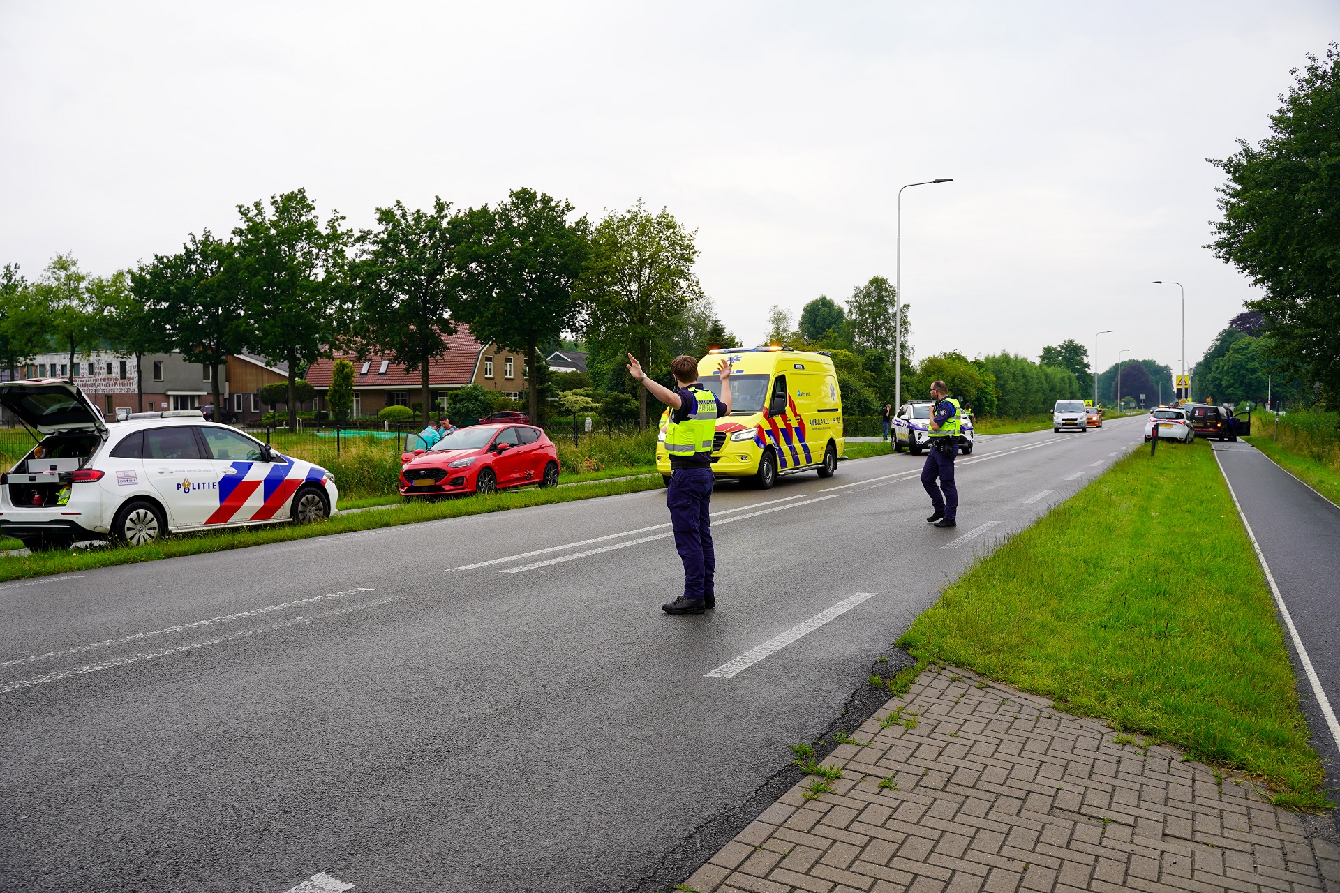 PUTTEN – De hulpdiensten zijn vrijdagavond rond 19.30 uur gealarmeerd voor een ongeval letsel op de Nijkerkerstraat (N798). Ter hoogte van de Broekermolenweg waren drie auto’s tegen elkaar gebotst. Een ambulance is ter plaatse gekomen en heeft kort een jong kind die inzittende was van een bestelauto gecontroleerd maar mankeerde niets. Voor de schrik kreeg het meisje een traumabeertje van de politie. Handhavers van de gemeente waren ter plaatse om het verkeer te regelen.