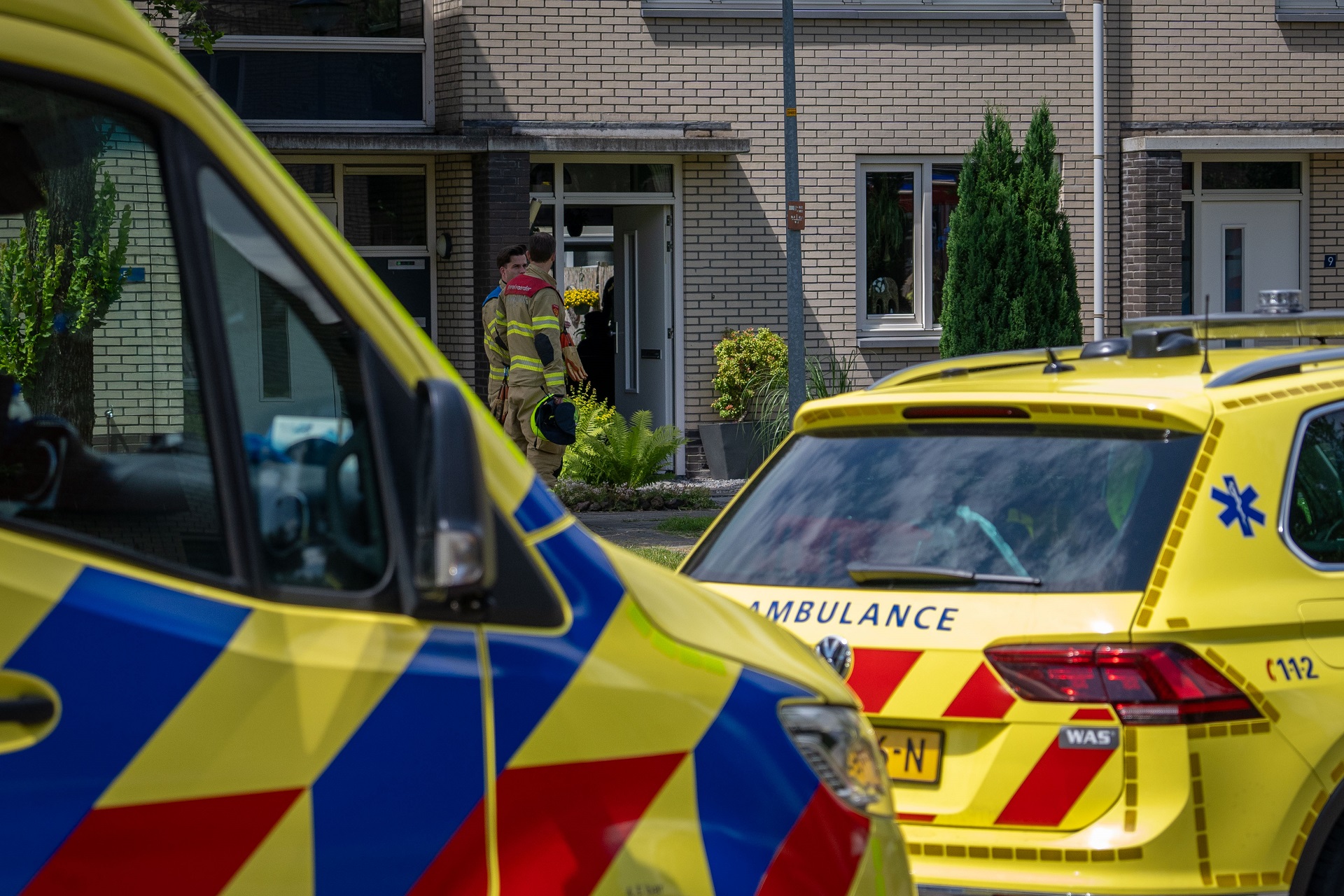 Fietsaccu vliegt in brand, bewoner ademt rook in en moet naar ziekenhuis